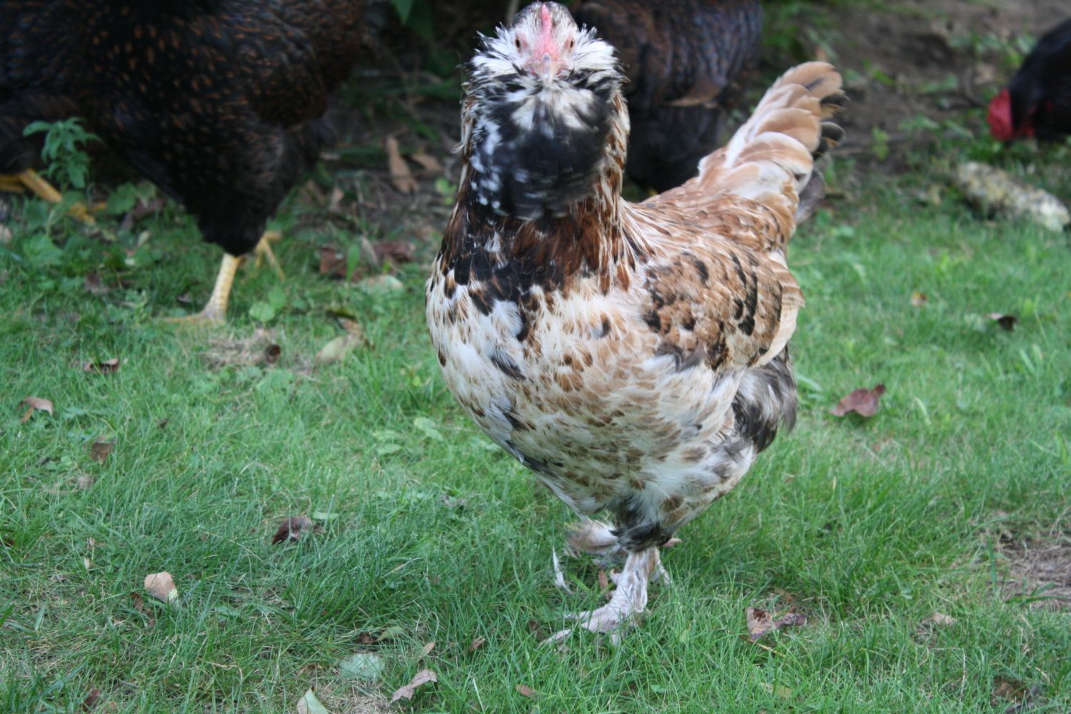 Now... I am about to turn traitor... sortof. I am a self avowed lover of Favs. They are one of the sweetest, gentlest and certainly loveliest of chickens with those muffs and beards and feathered shanks and unique coloration.... well, um, they have been deposed here by a bird that has muffs, beards, feathered shanks/toes AND crests. Forgive me for my lack of loyalty here but the Sultan has stolen my heart, at least temporarily while they are chicks. Now I need to have more Favs and my barnyard will be full of feathered pleasure lol