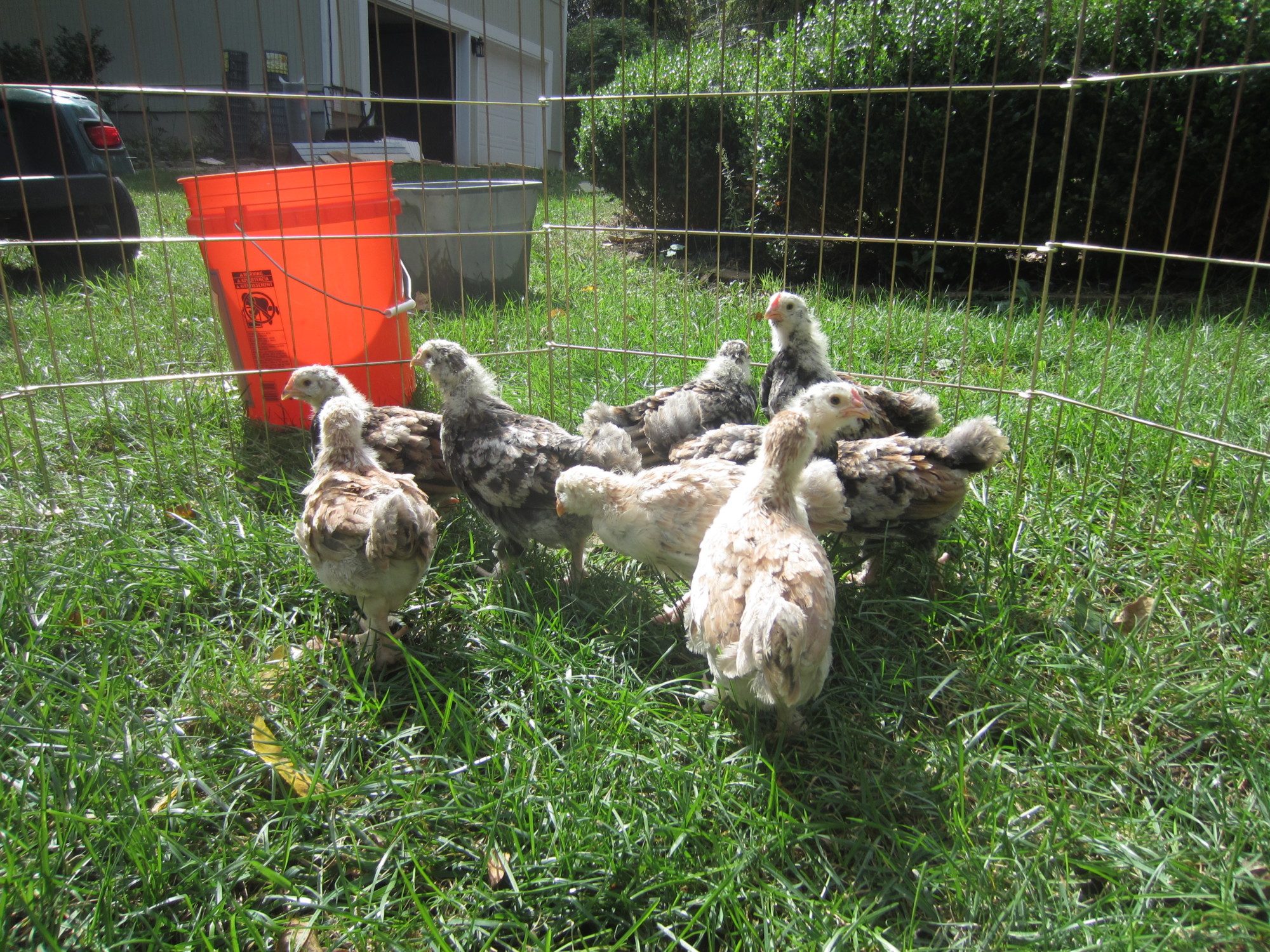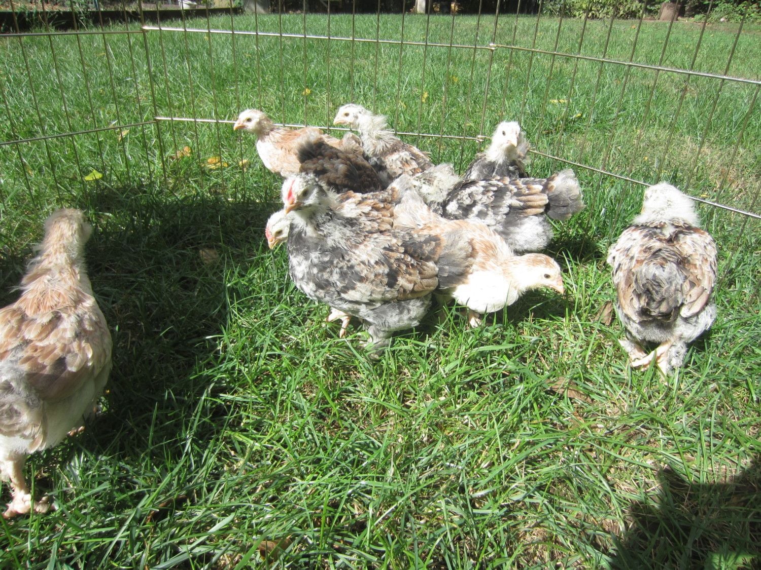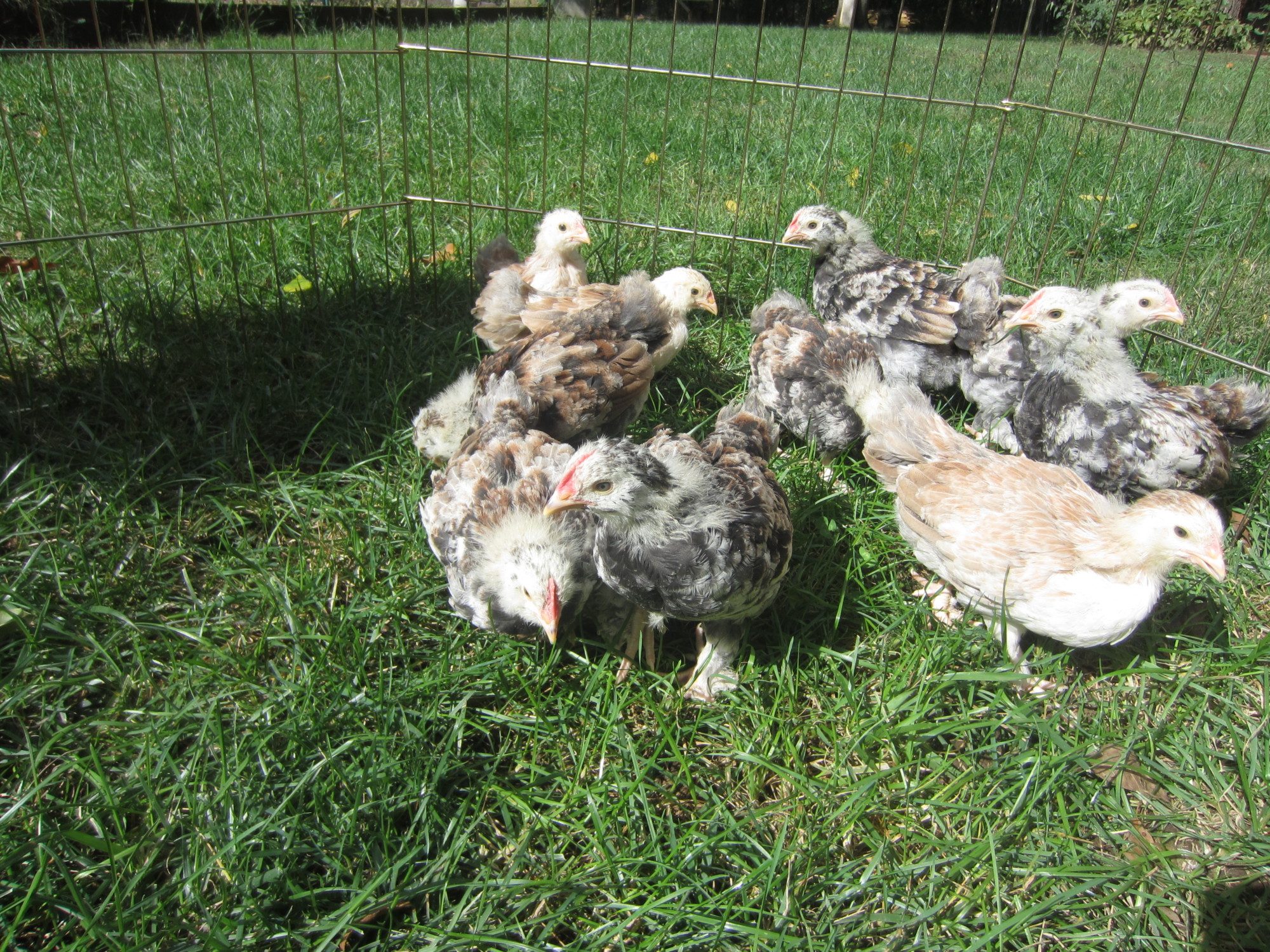 I've never seen a pullet with such a mottled pattern before. And are those blue or grey patches coming through on the wings and back?