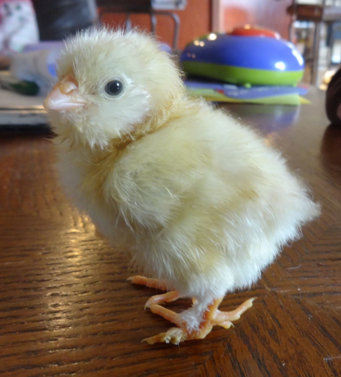Here are a couple of our new babies! The darker one I *think* hatched from an EE egg. Could an EE still have the feathered feet and extra toe?