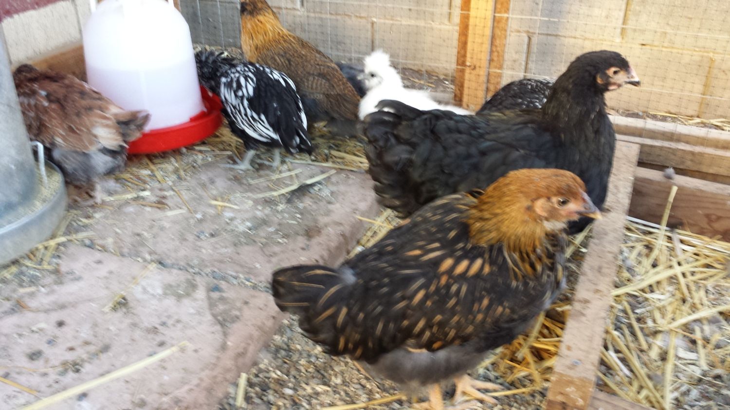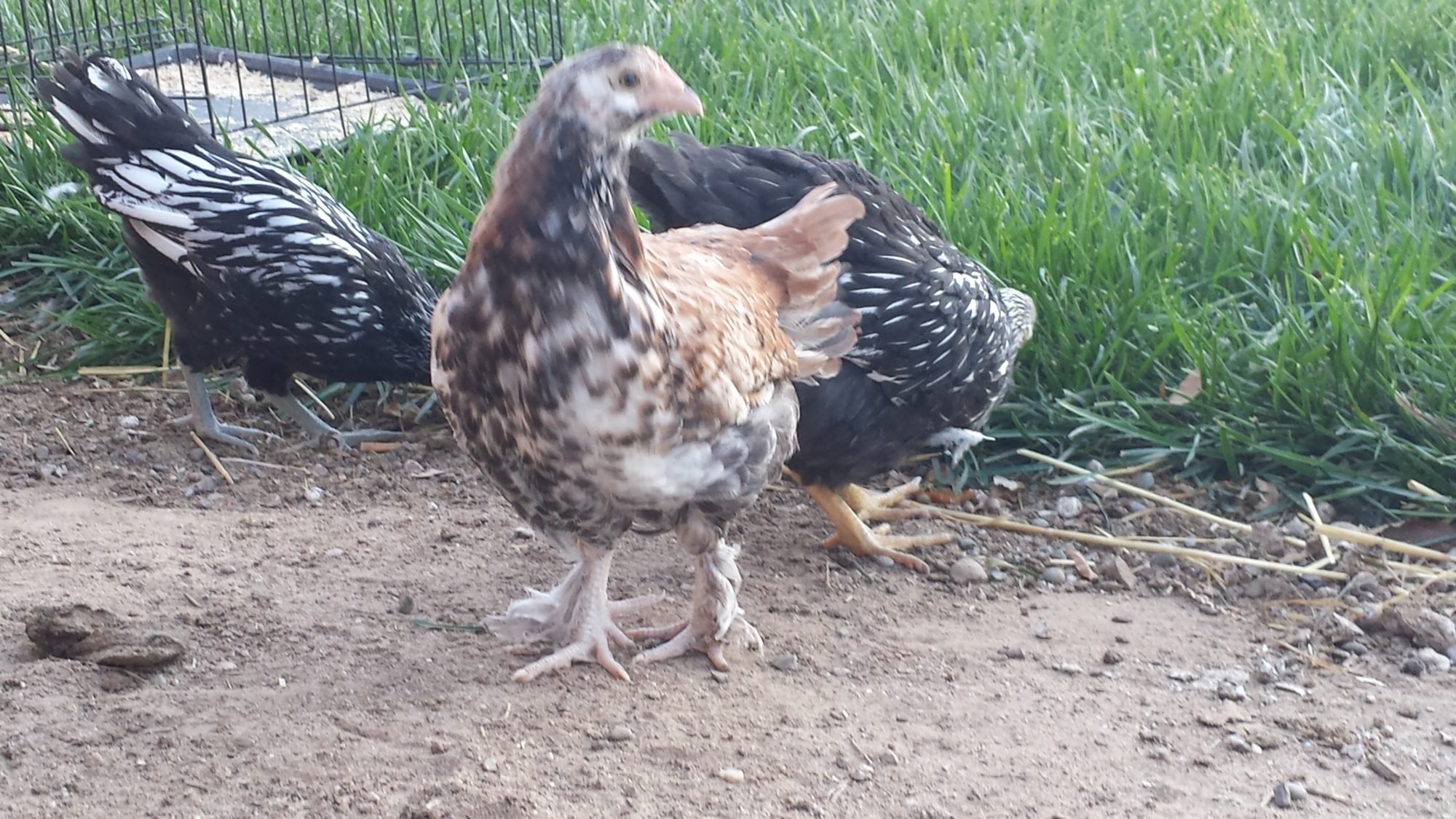 Glad to hear she is doing well! No worries, she is certainly a pullet.I haven't updated on Dizzy lately, mostly because she is doing great and partially because I'm lazy. She is 7 weeks old now and her and her brooder mates have moved outside with my 3 teenager chicks. Her eye has completely hazed over and the swelling has receded a bit. She is a feisty little thing that can hold her own. My teenagers that she is living with are 20 weeks and younger. They get along just fine. An occasional peck here and there but nothing that worries me. Anywho, here's a pic from a couple days ago.and she better be a girl! She's getting dark coloring. Please tell me what you think as far as sex goes. I bought her as female.![]()
