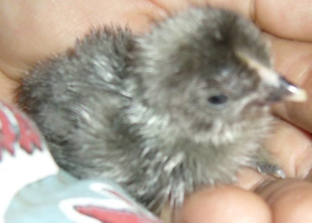 if this was from my favs,i had you down to hatch around sat.this must be one of the mutt eggs that hatched early.i have never had a salmon faverolle hatch that color and they are definately penned up.don't scare me like that.lol