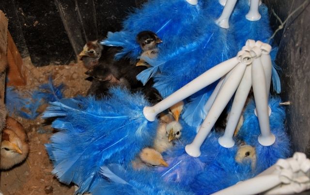 I recently saw a couple pictures of a feather duster being used as an alternate for a "hen" in the chick brooder. I am wondering if anyone has done this and what they used for heat with this set up? Thanks!