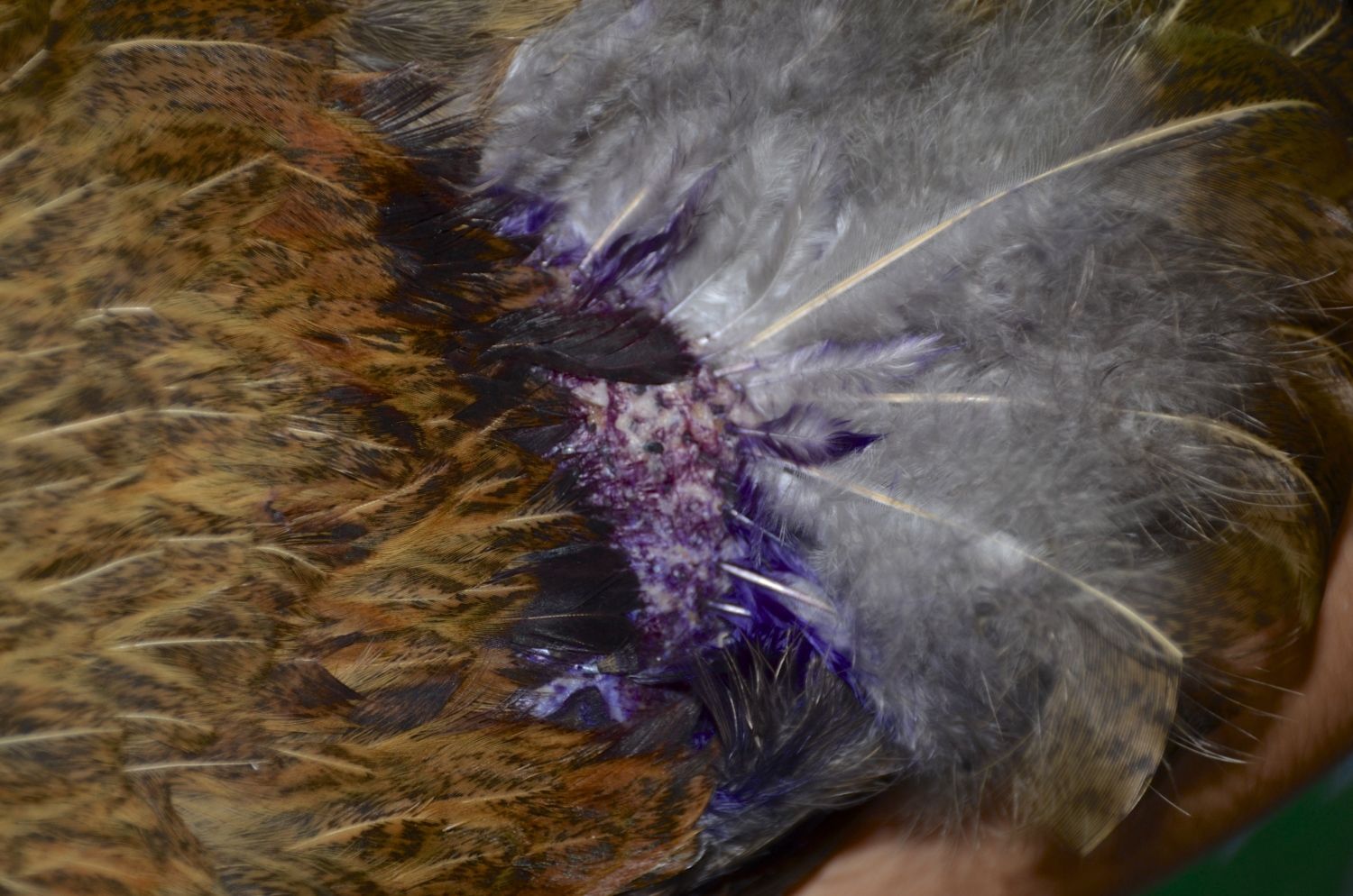 Google images of blood feathers and de-pluming mites to learn more.
