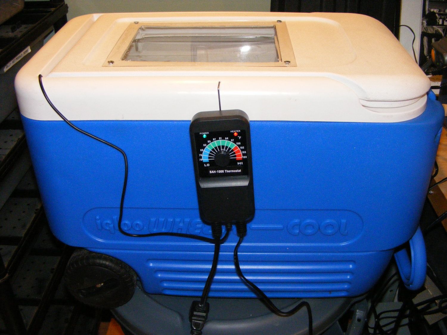 So now on Feb 21st when I go into lock down, I can take the eggs out of my current incubator and move them to this one till they hatch. I used a CalorIQue flexible heat tape for the heating element and a BAH-1000 Thermostat. Thanks again for the suggestions and good luck to everyone waiting on their hatches.