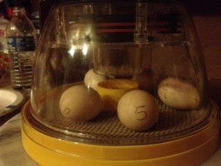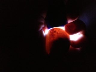 so it sounds like i have babies coming from my broody!! every egg i've candled there is always a really nice air sac on the right end a a big black blob in it! so i'm assuming that i have very fertile eggs!! i eat my own eggs all the time and also give a cracked egg to my other animals at least once a week, always has a bullseye-big ones on the yolk. the yolk is always nice and strong, yellow almost orange. so i guess i'm providing for their needs very well.