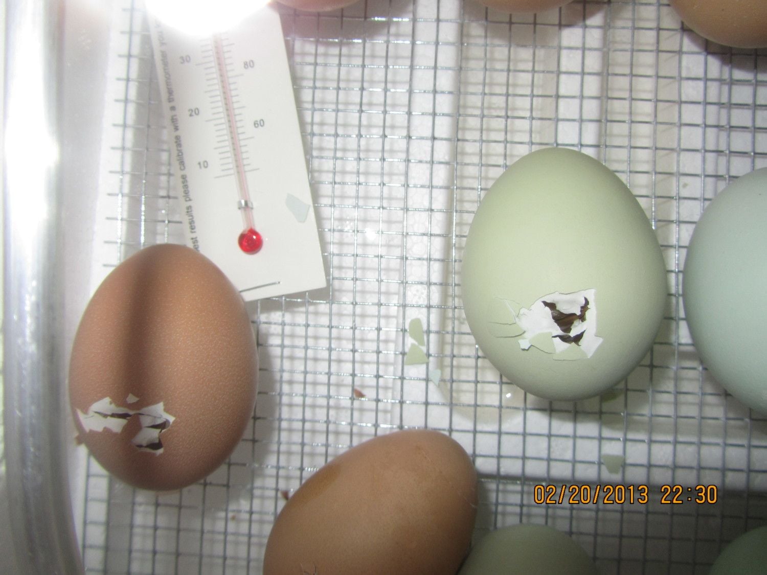 well i have been cool all day. I even had to leave the house most of the day, no problem. Now I am starting to feel like the nervous father. I have 26 eggs and there are7 peeping now. The first holes appeared this morning and none have broke out. there are alot who haven't even peeped but I know it is still early. I will not get too stressed until tomorrow night. I am anxious to see some babies. The first batch I hatched was the same way, the first one didn't come all the way out until 2:00 in the morning. Still one is starting to peck the circle out, maybe before I go to bed. Luckily i live close enough to work I can come home at lunch tomorrow and check in.