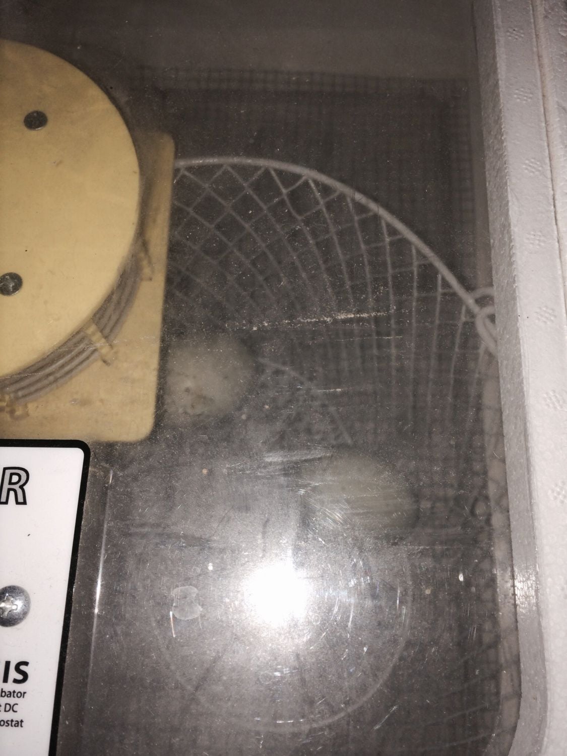 Coated wire baskets at Dollar Tree that fit *perfectly* in my incubator as pedigree baskets! I've only got one in there now, but I could fit two and still have room around them for a third breed. Plus, they are so tall, I'm hoping the chicks won't jump out when I open the bator.![]()