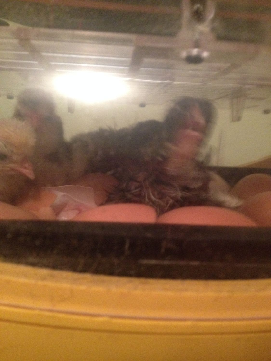 The good: All that hatched are very healthy and active. No curled toes or splayed legs. I hatched one cuckoo maran from a large egg, and he is massive. He looks like a little silverback gorilla. I'm going to name him Coco. You older people may know who that is![]()