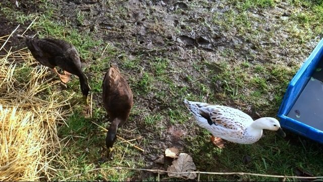 I've never seen anything like this, but I have had some setbacks this year with my flock and now have two Indian runner males and one Welsh harlequin female. I'm trying to rehome one of the males, but in the meantime, the female chases around the more timid male and gets jealous/angry anytime he hides behind the alpha. The males get along great, both are very mild-tempered, but the female is a biter. She's really nice to humans, and she handles being picked up really well, but she's terrorizing this poor guy. I heard spraying cologne on the victim would discourage the perpetrator, but that doesn't work. And the runner is so timid around people, he'd rather be bitten by her than be near me, and if I take him away, both males starts making crying noises. When I take the female out, both alpha male and female start making noises--the female is an extremely loud quacker. I did try separating her for a bit anyways, but at night I have to put them all together because it's so cold out. The male doesn't have any injuries yet, but I know the female is capable of real damage, since she damaged her own sister's eye this summer, and it took forever to nurse her back to health.