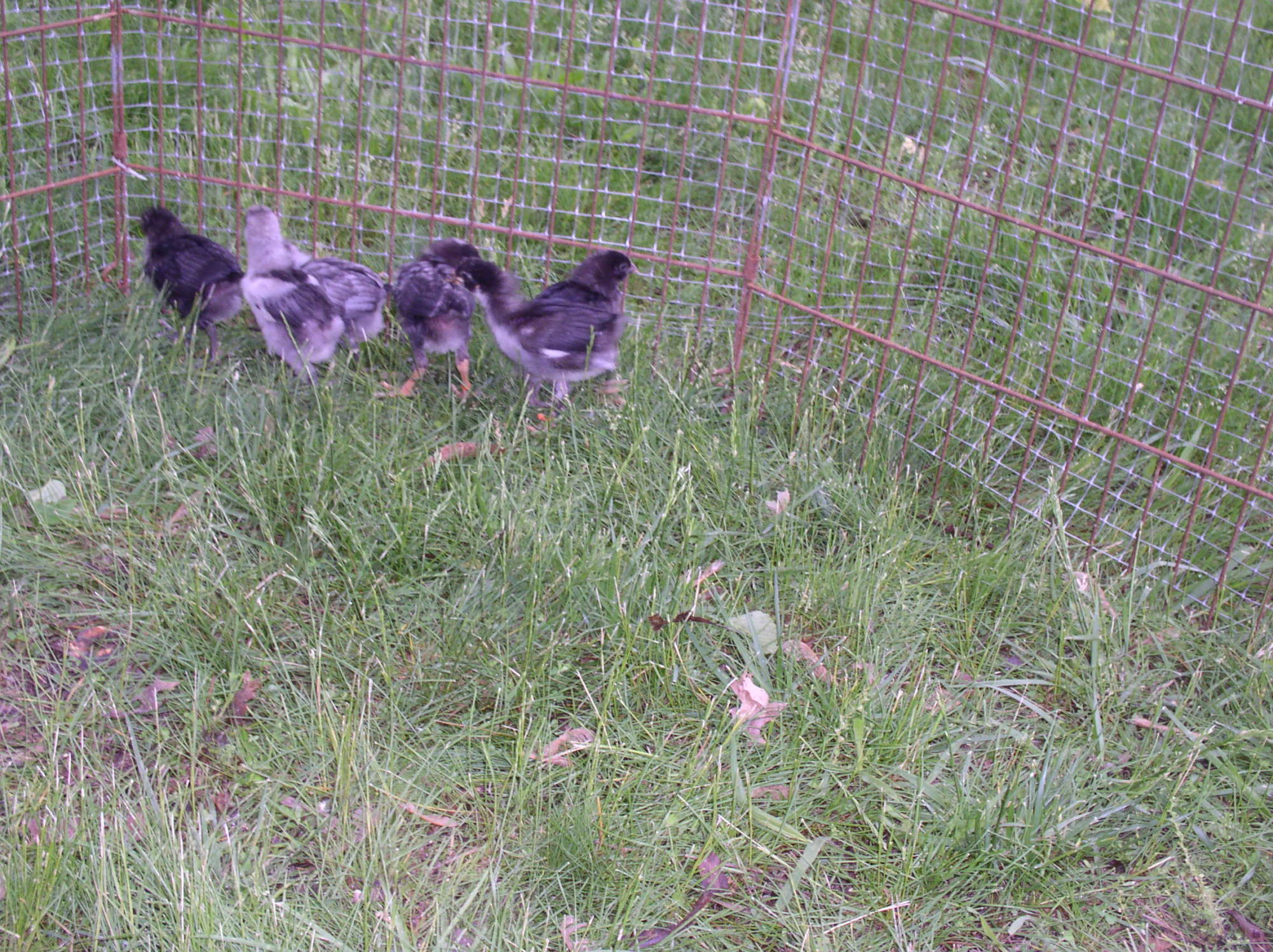 This is what I did with my feeder. I screwed it to a 2X4 and screwed that to another board on either end. I decided to leave the top off and see what happened and of course they walked in it. I told them that was not polite but they didn't care. I may put the top back on tomorrow. I didn't want to walk back to the house and back again at that point. So, this is there first day in the coop. They are going to be in for a shock when the cold front comes through tomorrow but I guess they have each other to help keep them warm. As well as plenty of good FF.