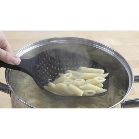 I found just the neatest scoop for my FF and thought I'd share with y'all. Of all places, found this at Walmart, in the kitchen utensils. It's a large ladle/strainer combination, black plastic, with a long handle and a deep bowl/ladle. It only cost $1.99 and it turned out to be just perfect! The handle doesn't have any spaces in it in which the FF collects and grows fuzzies and in which BOSS seeds sprout(this happens in my regular scoop's handle), it's sturdy and the whole bowl of the ladle is covered in large holes for draining out excess fluid. The handle is long enough to stir the whole batch in a 5 gal. bucket and it holds the same amount as my regular scoop holds~2 c..