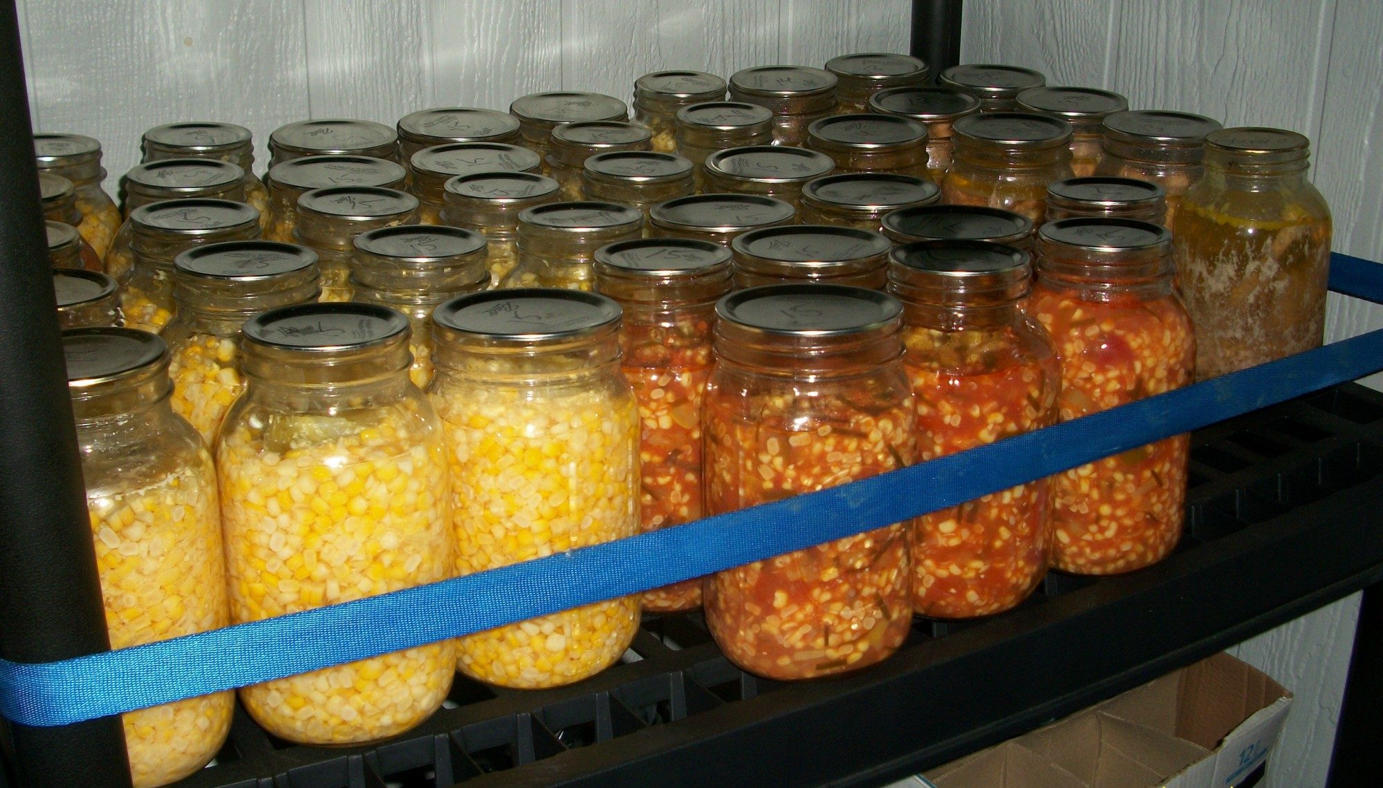 Most pressure canners are good for water bathing, too. I'm moving to Bee's house!It's pretty much a necessity in homesteading to learn to can and it is incredibly gratifying to have all those beautiful jars on the shelves, filled with homegrown goodness that you cannot find in any store....nothing so fresh nor so flavorful, nor so filled with nutrition, nor so economical. It's like having a grocery store in your own home, so when everyone else is out there worried when storms hit, when the power goes out, when going to town is just not an option, all one has to do is walk into the pantry and choose some healthy meal options. Look at all that fresh sweet corn!![]()