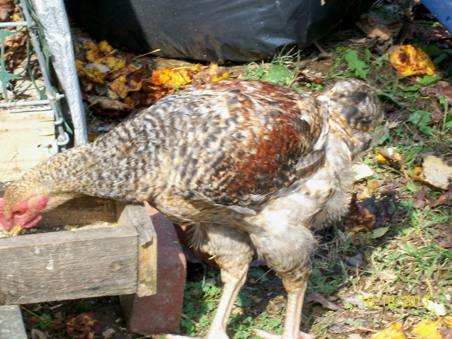 Bee, apparently the Orpingtons can carry a hidden barring gene as can the BCM's so when I crossed the two of them, I actually got some Cuckoos.....all males. The oldest one that is a capon recently has started getting a little golden/copper on his wings.....I'm not even going to try to figure that one out. Initially I just thought he had something on a couple of his feathers. I don't know if any more coloring is going to show up or not.