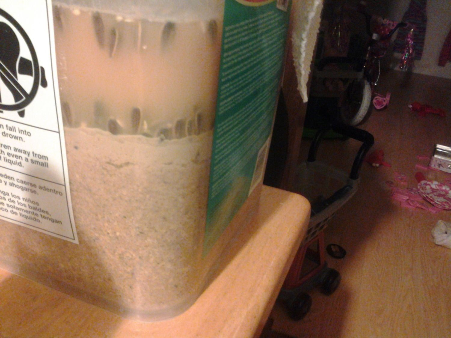 Nah...just stir it each day when you feed. Mine is like sugar cookie dough...no liquid over the top at all. Your chicks will thank you for it, as they won't be getting sticky, wet feed dried in their fuzz and then have bald spots left behind.