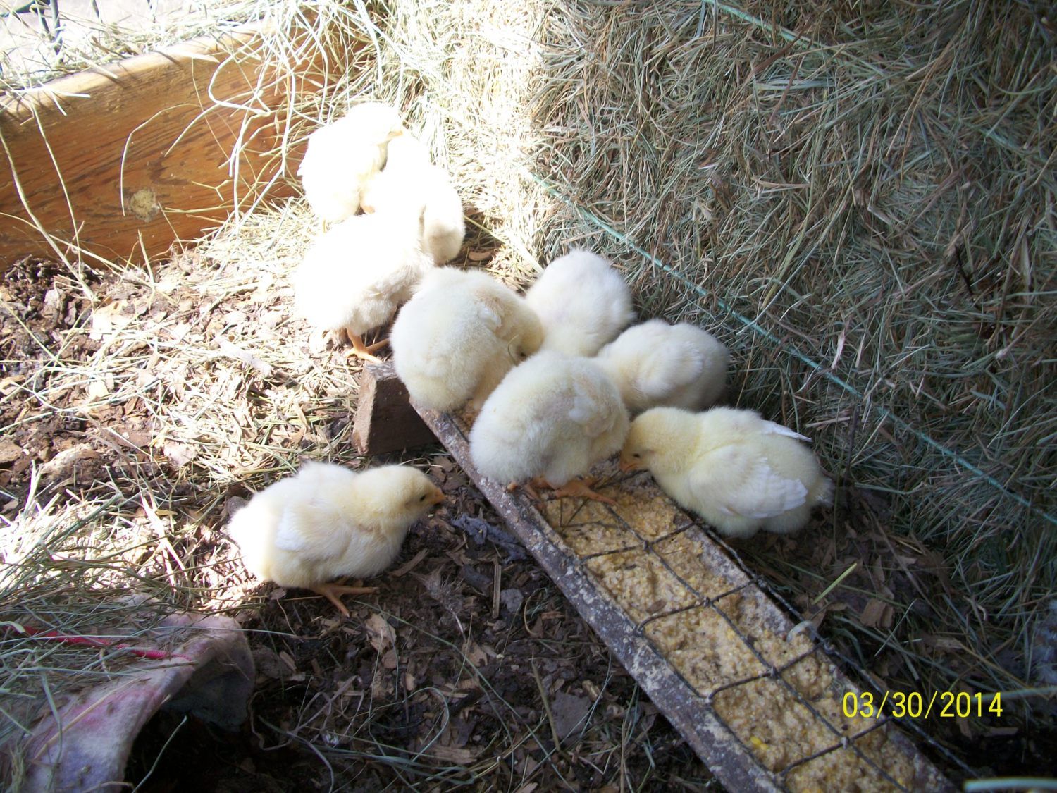 My 18 are going through about 1- 1 1/2 cups a day. Is this too much. Sometimes they don't eat it all and I stir it back in the batch. I feed 3or 4 times a day. II'm probably overestimating. I have white rocks and delawares plus six golden comets. Some of the little yellow ones have little gray feathers comeing in on their wings. I assume these are the delawares. Comets I can tell apart. Rust colored. No idea how to sex at this time. Not going to worry about it. I do know that the one that came doa was a pullet. I was just too tired to try and sex them the first day or two. Too late now.![]()