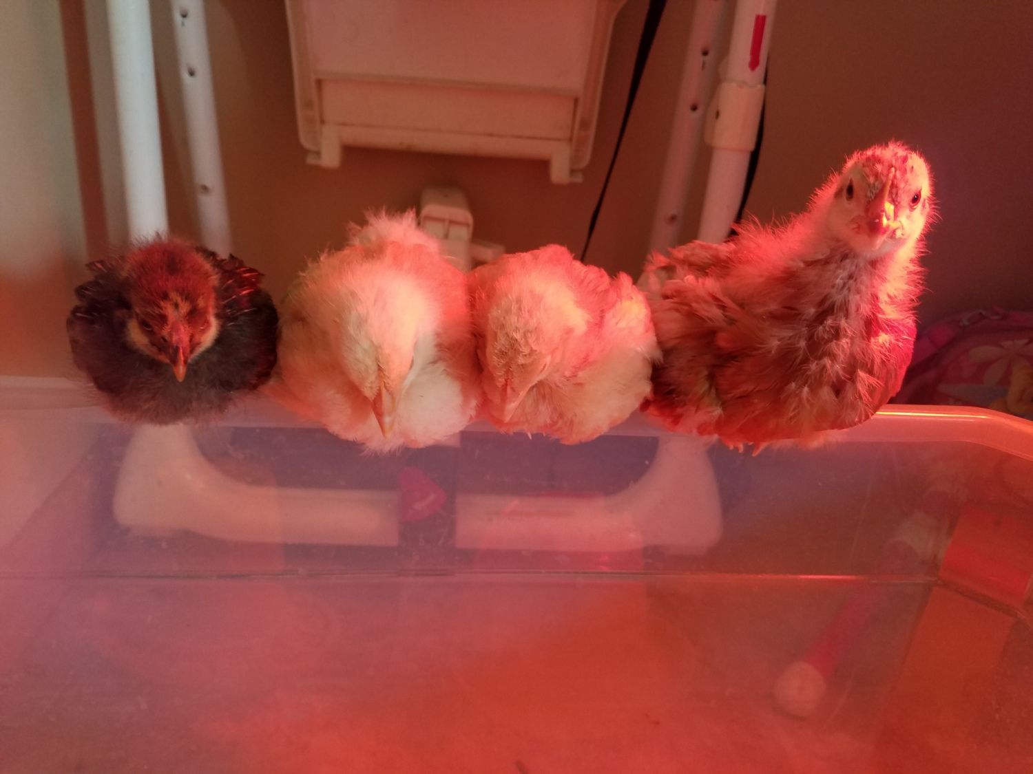 this is our 2nd & last batch for this year. 2 buff orpingtons & 1 Golden Comet & 1 wyandotte (either silver or golden). 16 May hatch