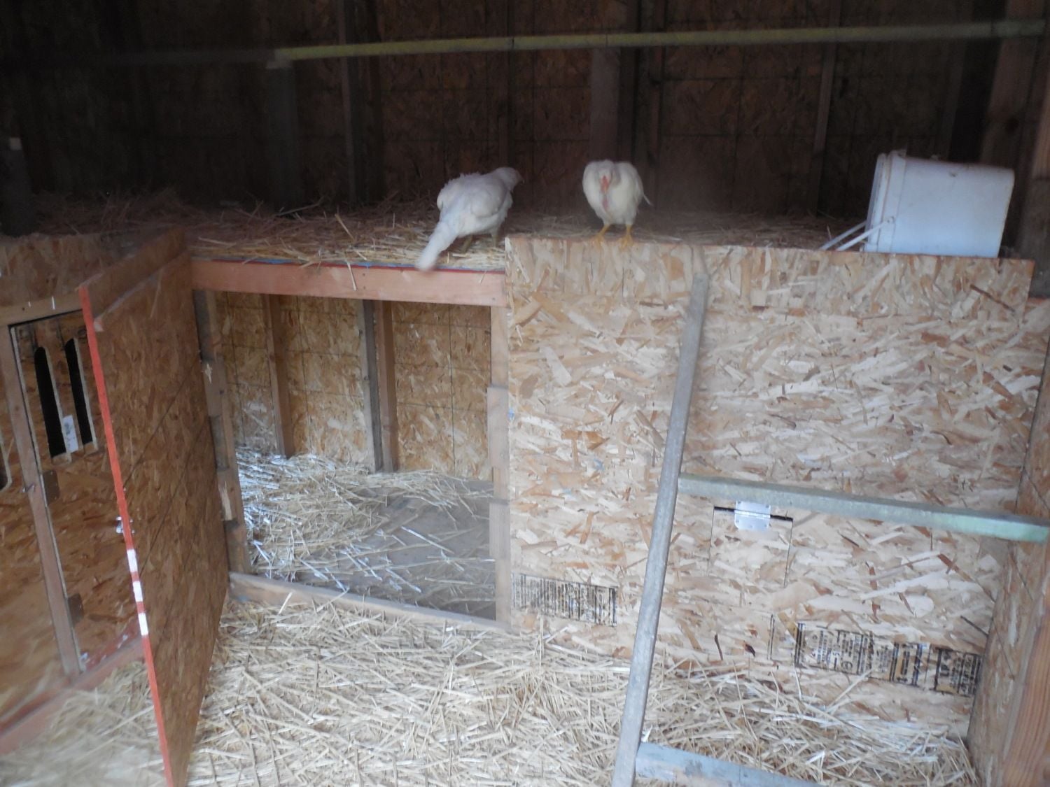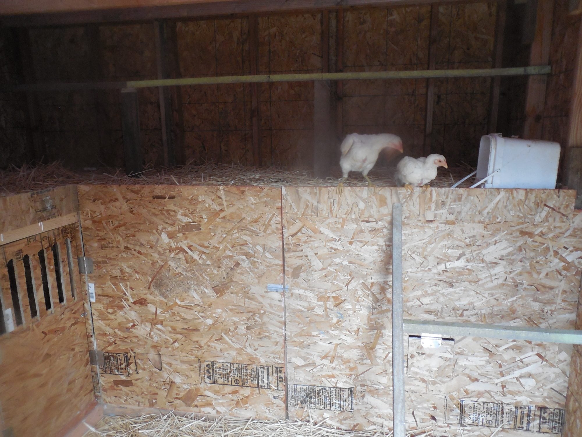 The thing is, ammonia and moisture rise, so in order for ventilation to be effective, it needs to up above roosting height. If the ventilation isn't clearly visible from all those pictures, you don't have enough.Don't worry, I am adding more tomorrow but there is a lot of ventilation already. The roost floors don't go to the wall so all the air coming in from the dog door gets circulated throughout the entire coop also the chicken door is open and the corrugated plastic isn't sealed so all those open grooves are venting air from the 6ft from to the 8ft back