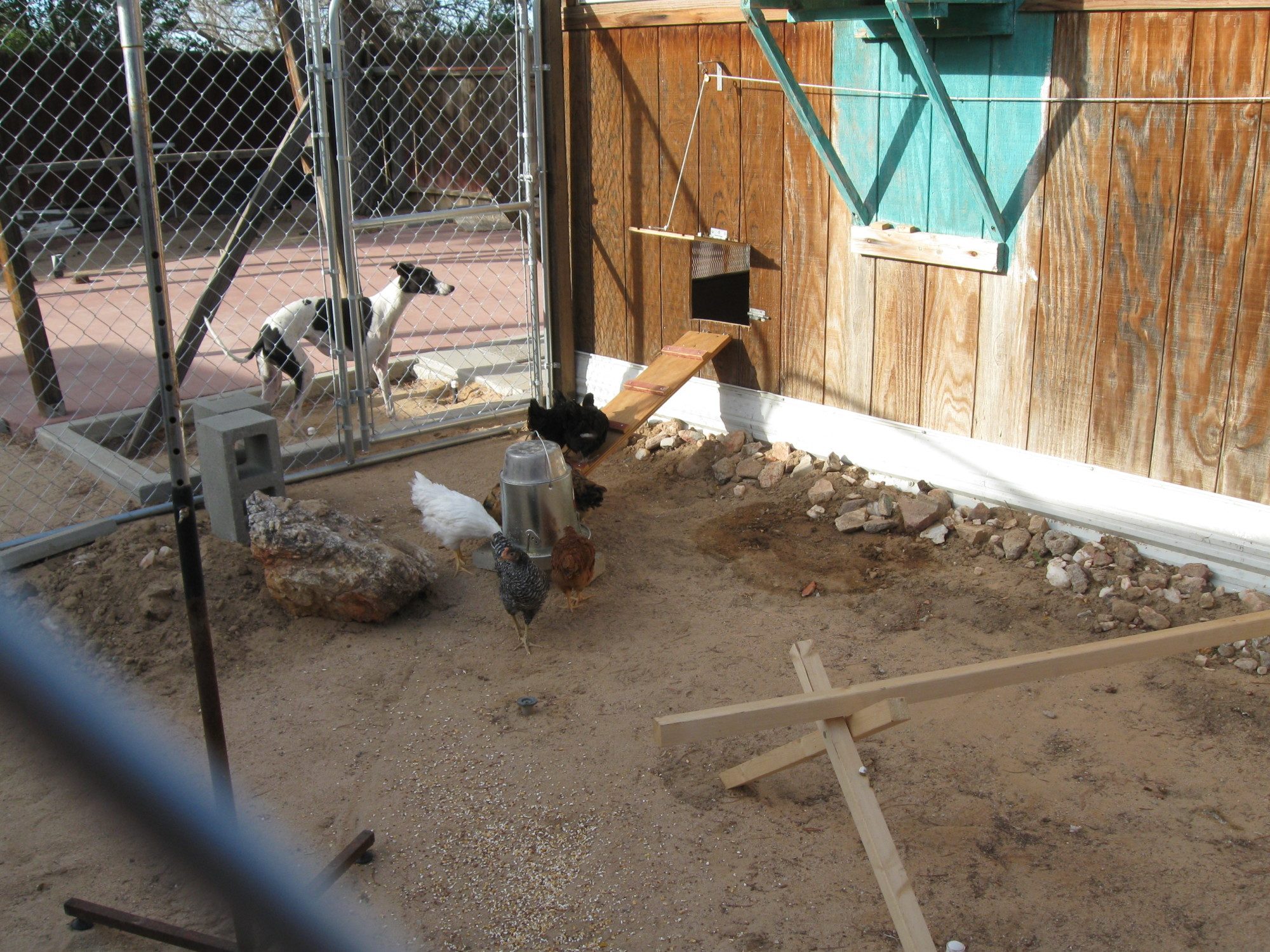 I cut out the pop door and opened up for the pullets to go out into the world...2 days later not one ventured out into their new chicky playground.