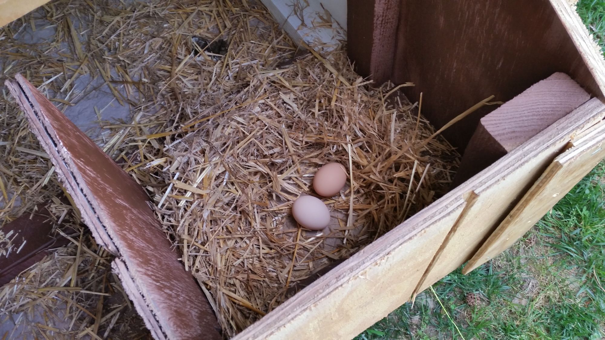 So we had move in day Monday night, into Tuesday morning. Keep in mind that the hens haven't laid for several days, and I think it may have been due to the reason that they were just feeling stressed... been pretty taxing on my wife and I keeping our twin newborns taken care of, let alone our dogs and the chickens. Anyway, it was pretty awesome to see Brooke walk into the coop and immediately go straight into the first nesting box and just turn around and settle into it. Then I watched her through the vent windows on the coop and she went into the next nesting box and did the same thing, lol! Needless to say, I think the girls absolutely love their new home.