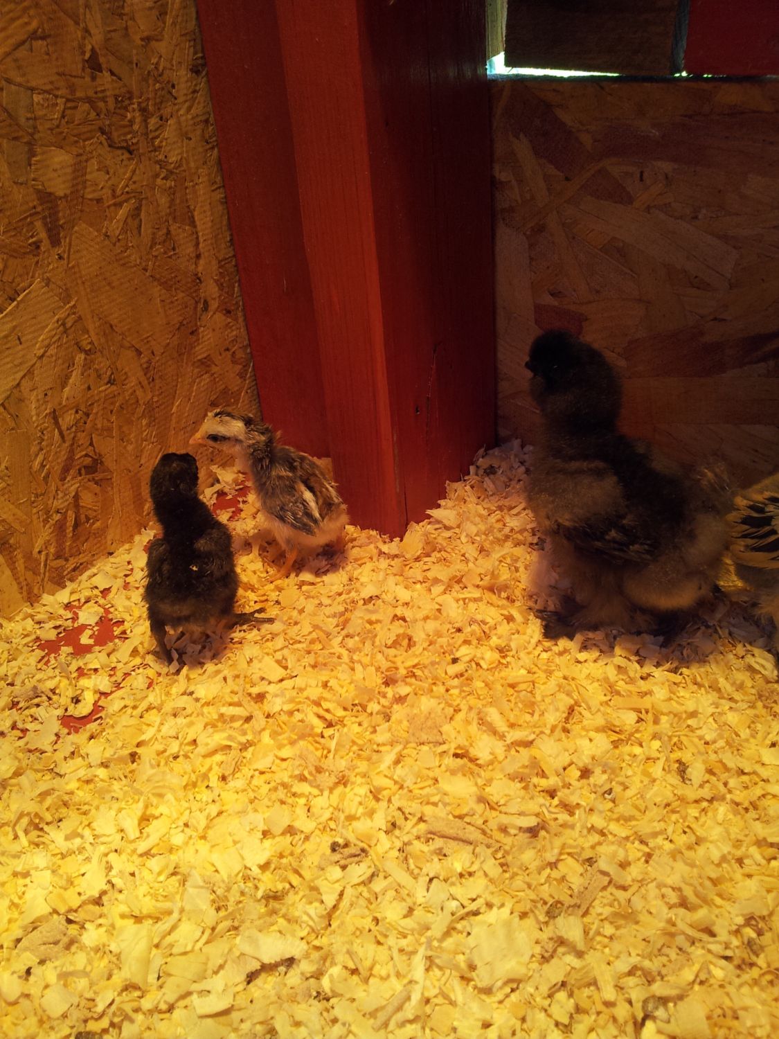 I got 8 new bantams two wed ago. 4 silkies, 1 frizzle, three idk........then two days ago my mom bought me two old english bantam chicks that are so little.