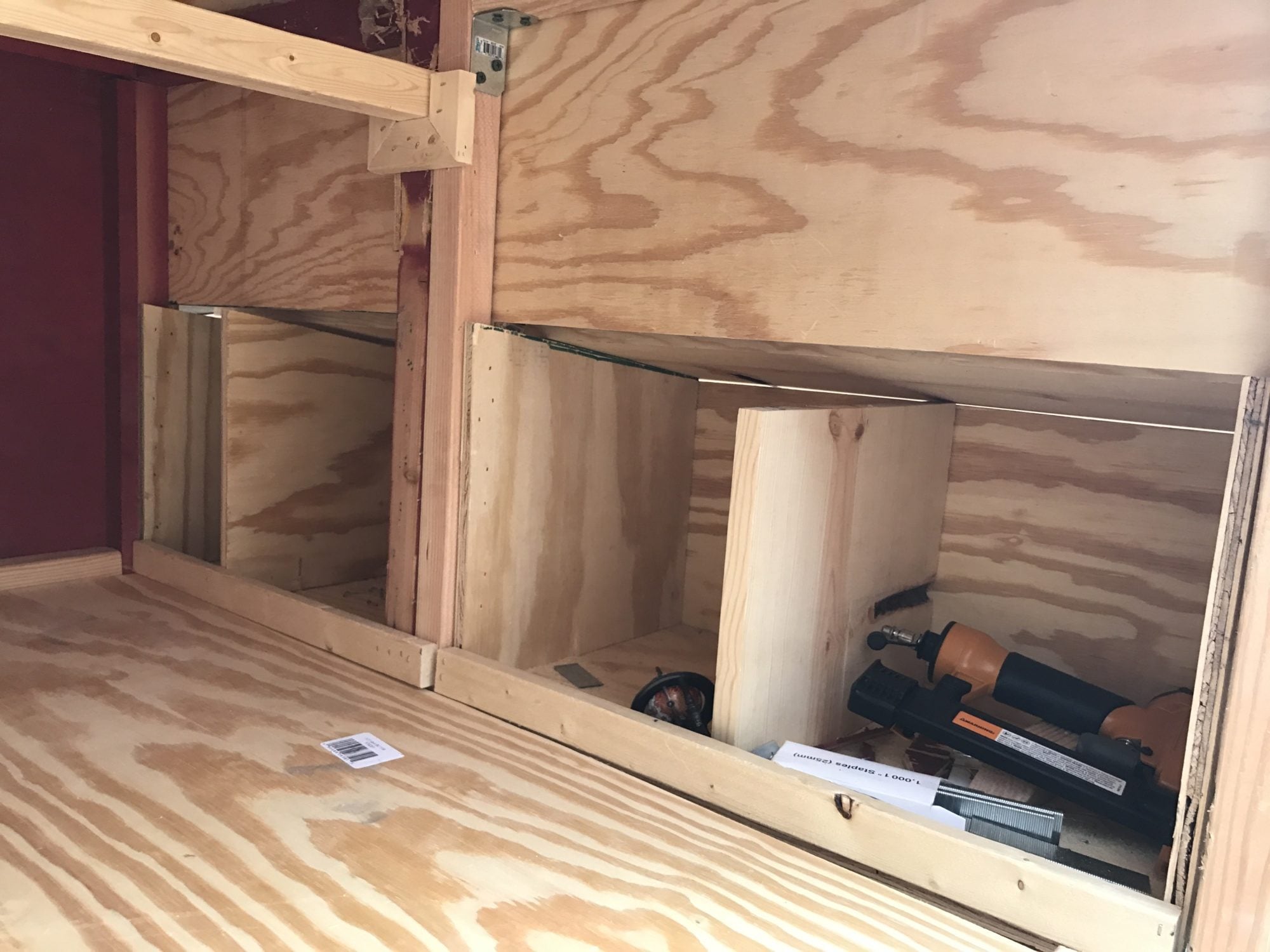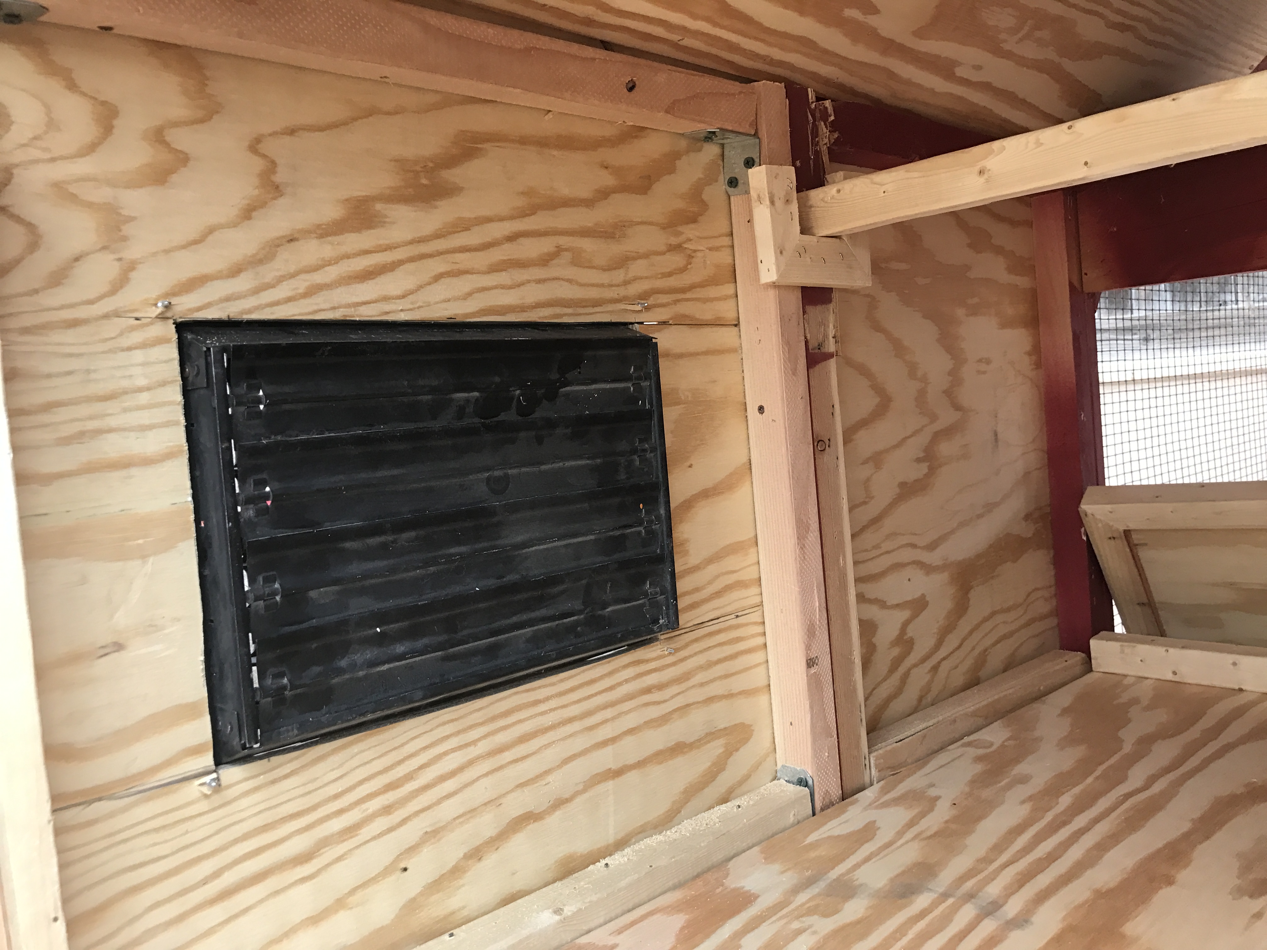 This has 3 nest boxes, two perches and 4 vents with shudders ( I used some old HVAC floor vents)