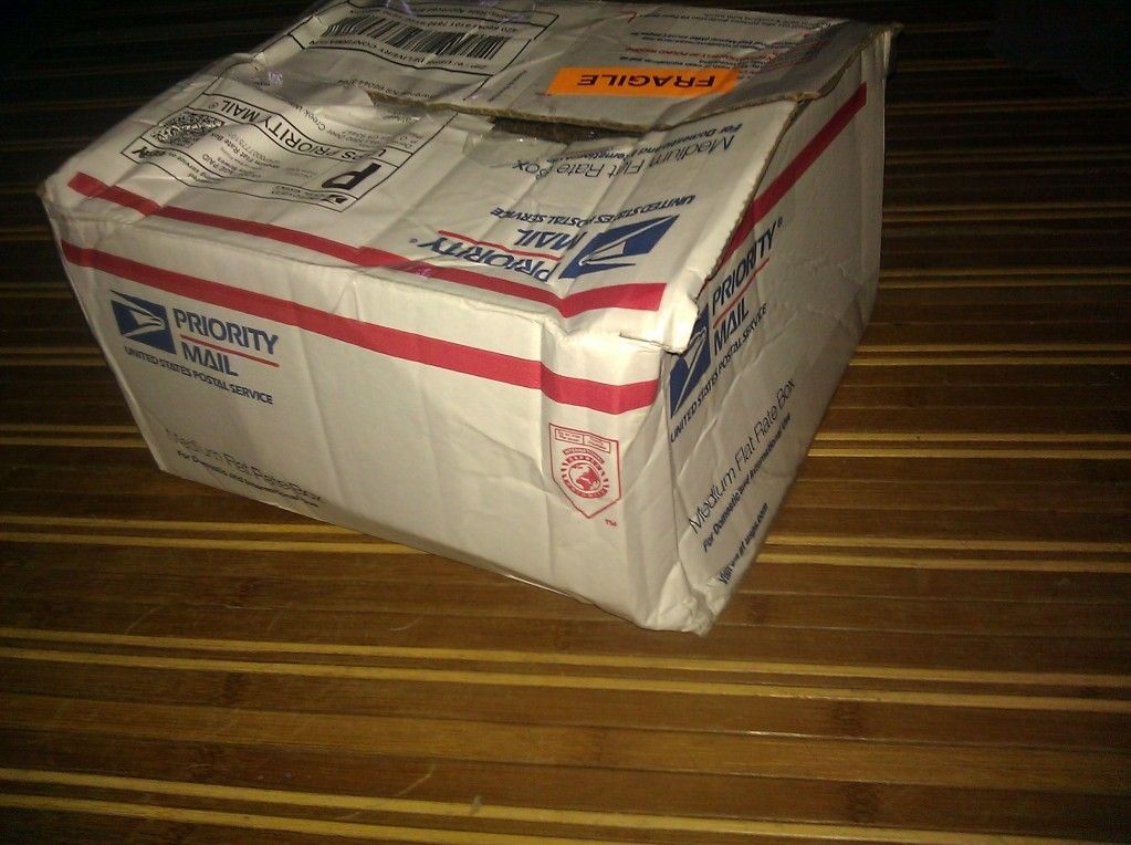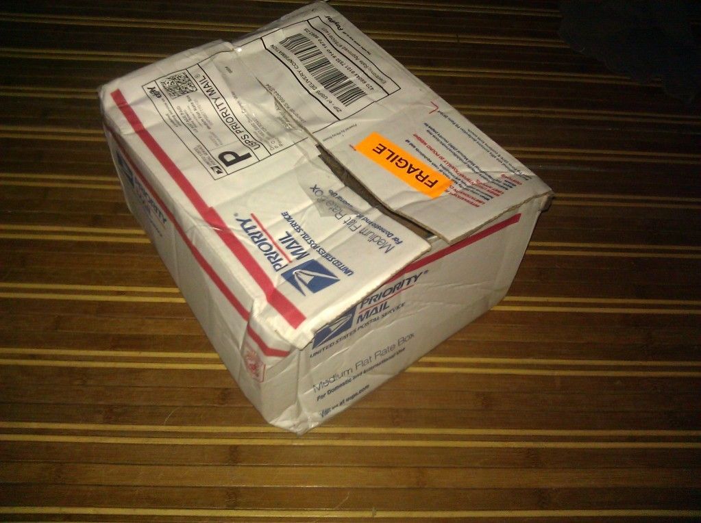 Same clerk as above, rotates the box and looks at all six sides (mind you, this is a standard PO priority box, nothing much to see). I say, "They are eggs, please be careful, see the large black arrows on all four sides saying which side is up?"