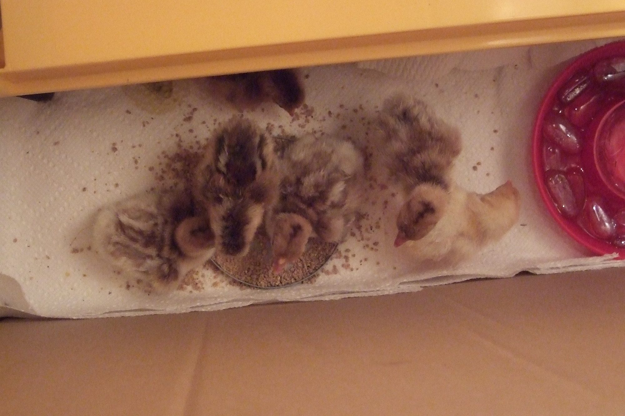 Here are some pics I took....I love the EcoGlow 50 that I got because of the reviews on the Easter Hatchalong thread.....but it's hard to take pics of the new hatchlings!!