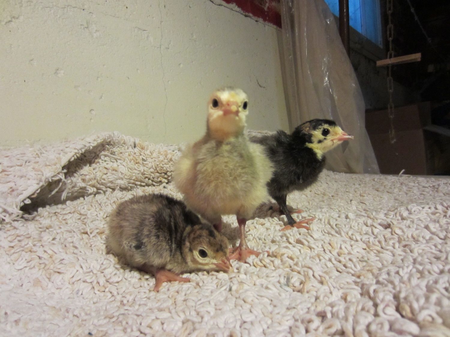 I have chicks......Yes, with an 's'! Well, it's just two...... but I hatched them! MY VERY FIRST! One is from my friend's Wellsummers (or BCM's not sure which) and the other is from one of my favorite chickens' eggs (she is a little SLW/Campine mix.) I still have a bunch in the bator, I'm going to leave them a while, just in case. I still have 20 under a broody, due tomorrow, and I had another hen go broody on Friday and yesterday I gave her 25 guinea eggs! You can't imagine how excited I am over those two chicks, I love the sound of them chirping in the other room and suspect these will stay inside in the brooder WAY longer than necessary and will be quite spoiled! Woot!