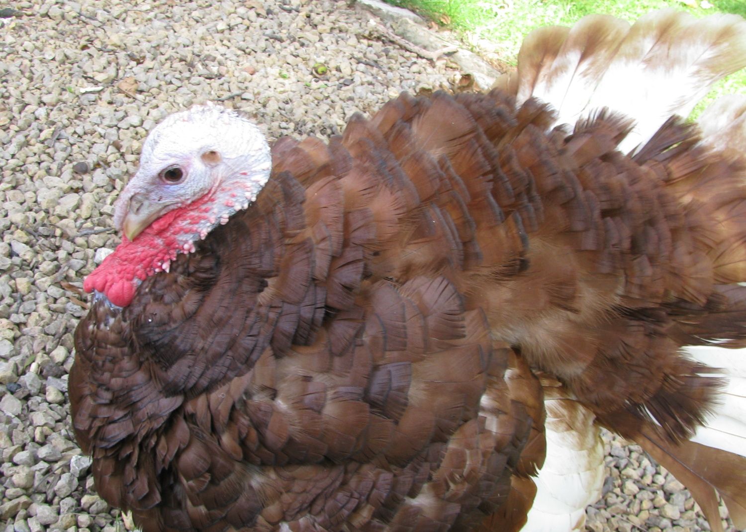 Yeah, I think its harder to tell in photos than in person. What I didn't mention is body type. The hen has a rounded body with neatly laid feathers. The tom is much lankier. His body is not yet filled out since he is still growing but he's all legs so is taller than the hen. His feathers always look a little ruffled too. And, you know how in cartoons the female always has large eyes with big eyelashes? Well, my hen does have these gorgeous big, brown eyes, that are quite different from the tom's. The thing is, some of these differences could be just individuals since I only have the one pair. I don't know if those differences would be noticeable in ALL RP's.Wow that's kinda hard to tell!