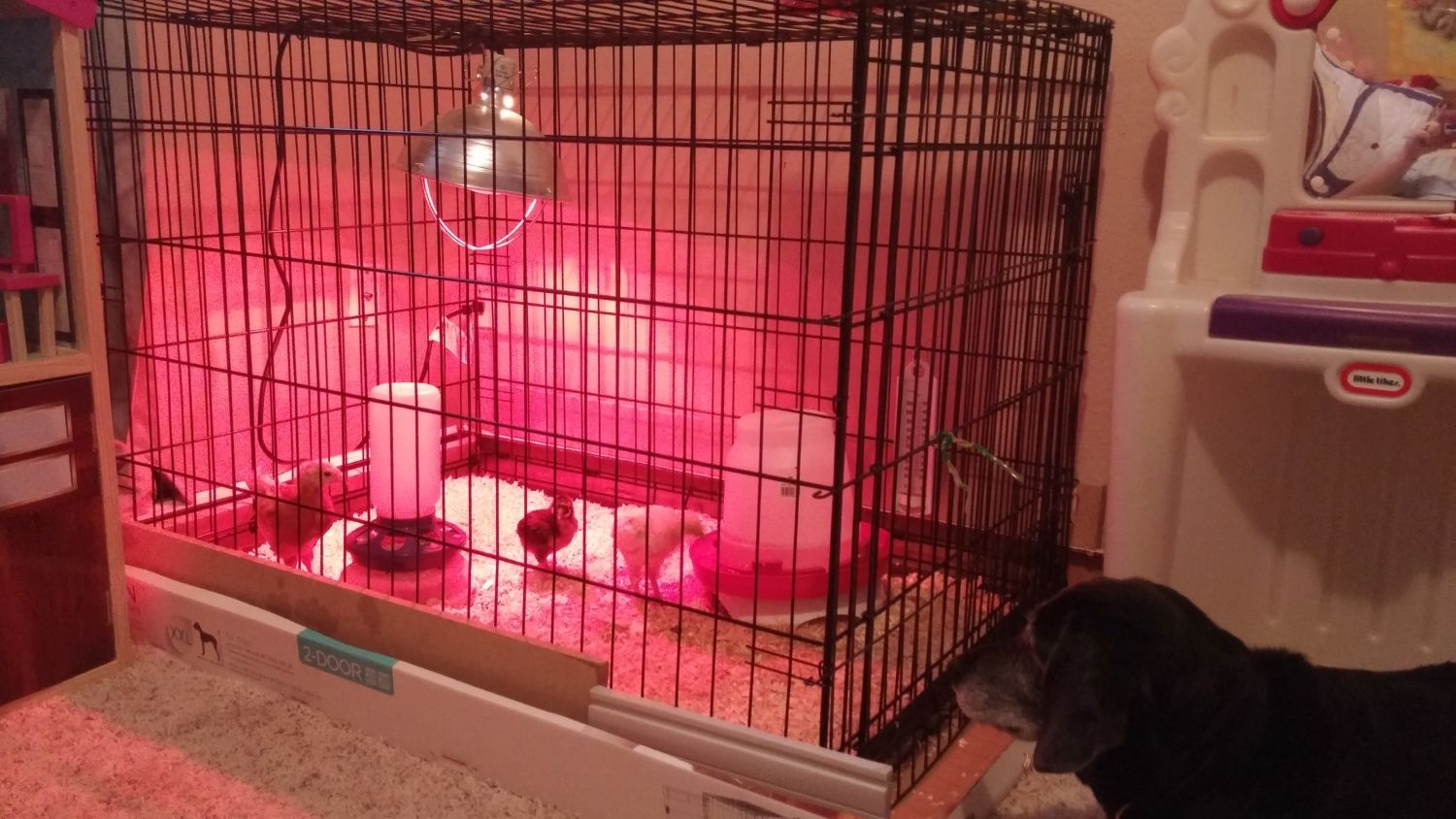 This is where they are currently at and are happy right now but I know they will need to be put in the coop shortly cause the oldest two Hopper and Tiny are 8-10 weeks old.