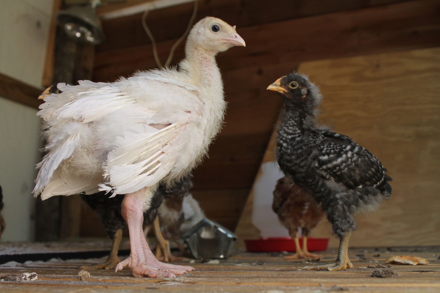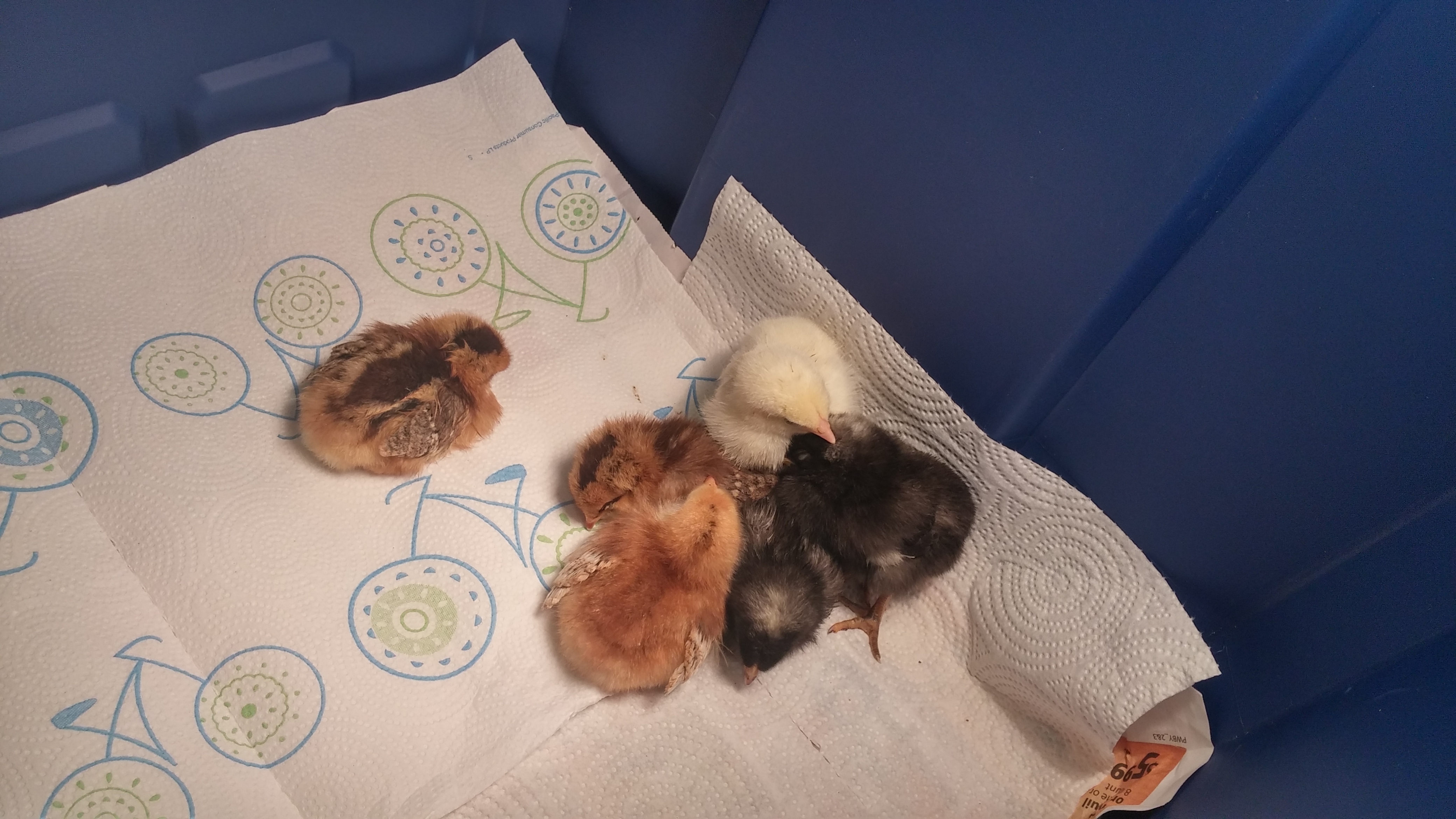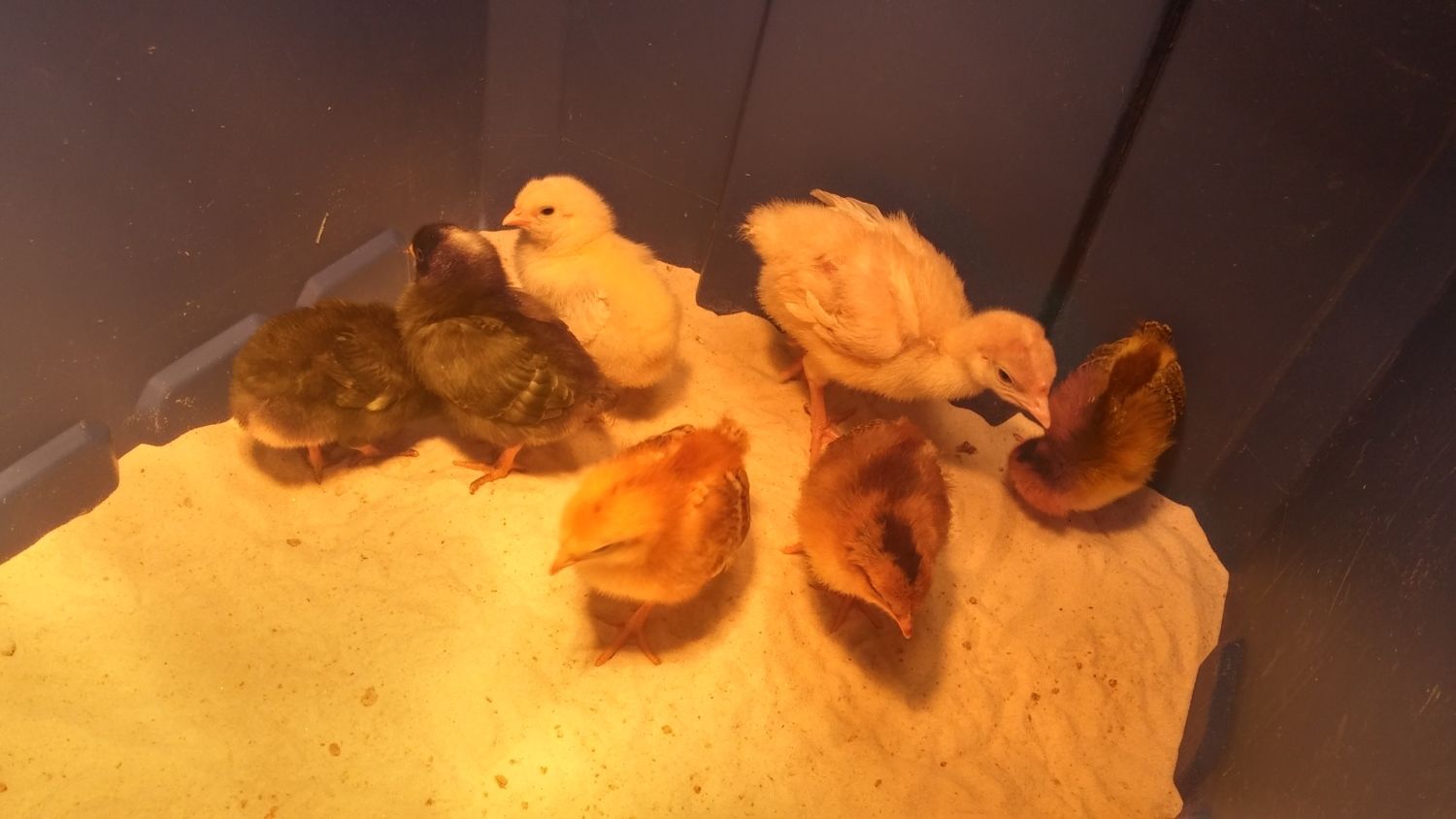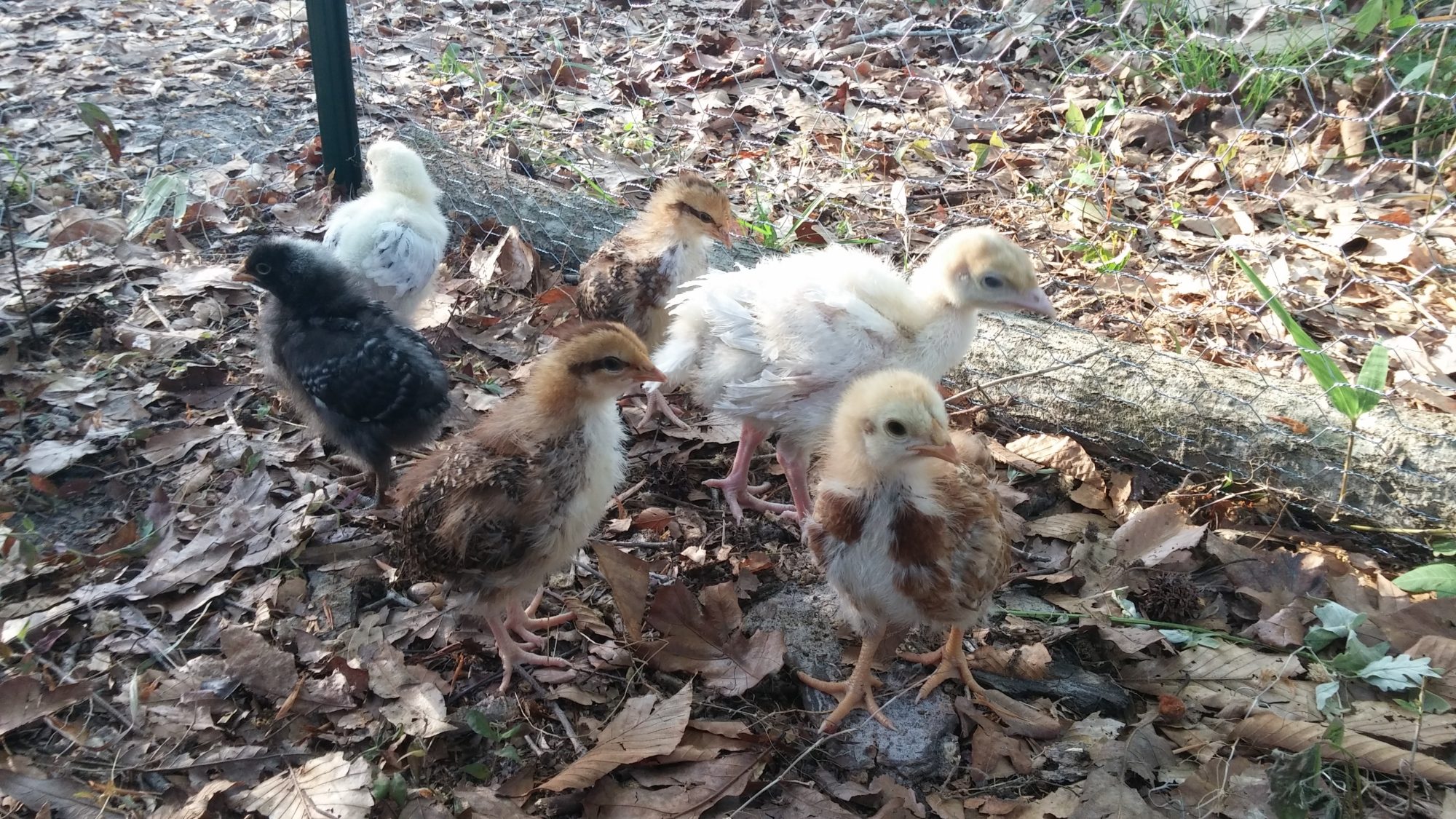 I brought them home mid March and they've been doing great. Six chicks and a turk. The turkey was a freebie (and the hub took some convincing before we accepted) but he's such a personable little thing, we're both really glad we did.