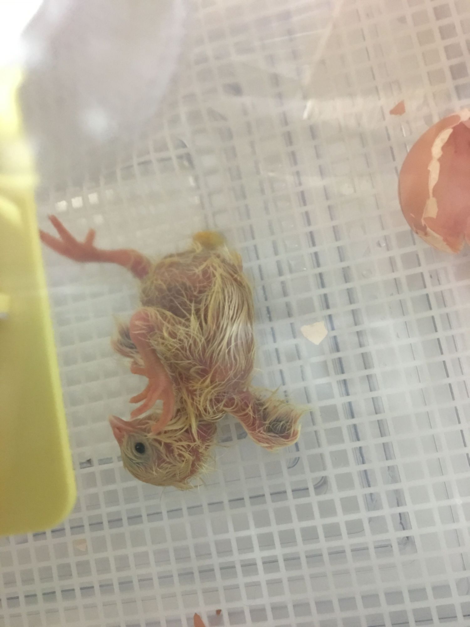 So our first chick ever hatched! Healthy, rolling around...but one leg is extended normal and the other is staying bent by his head. He keeps rolling and trying to get up to no avail. Is this normal? Give it a few hours? I'll post a pic if I can figure it out.