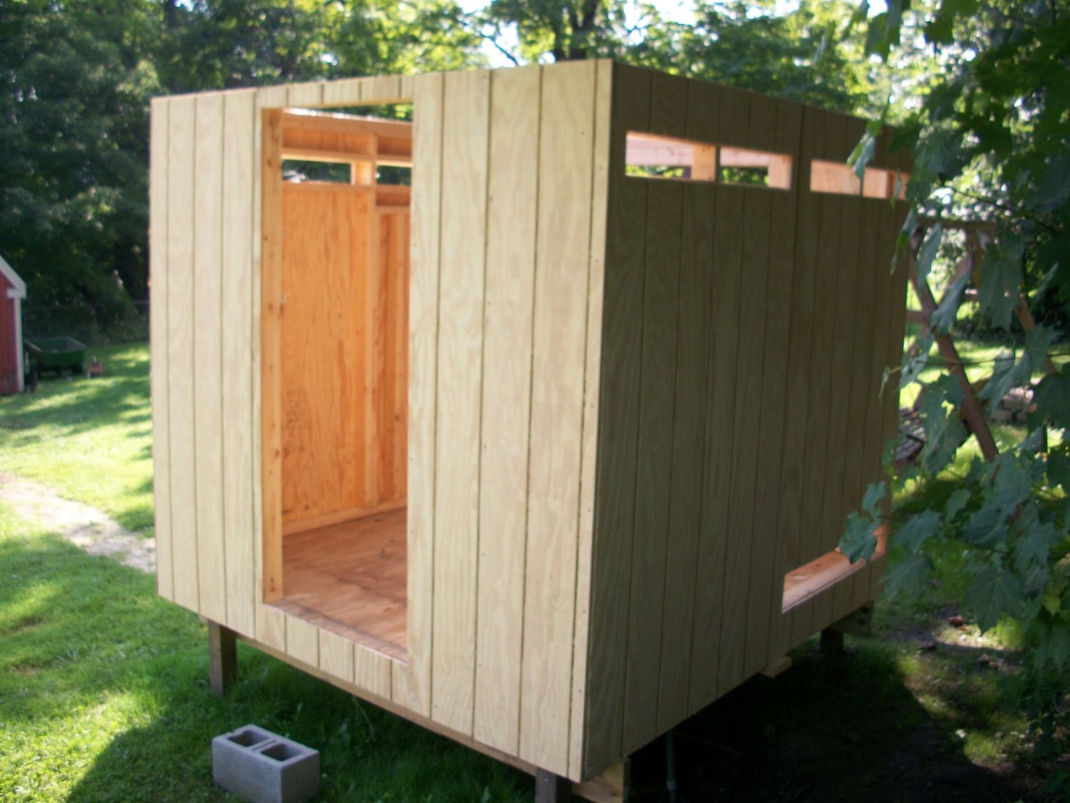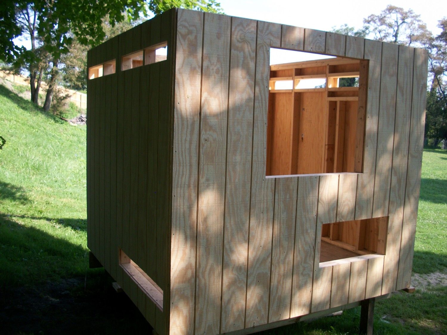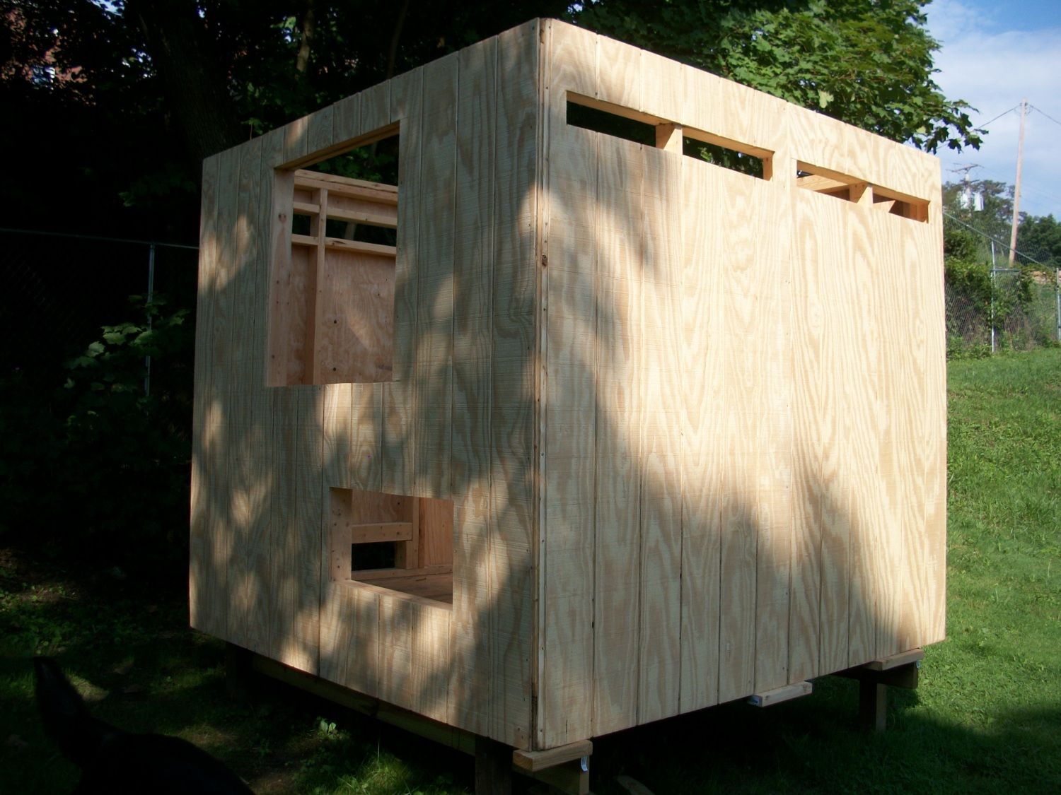 Igot a3x3 window to intall cheap.The hole at bottem right is for outside nest box. Dark side on left ontop are for vents the bottem one is for removable poop board