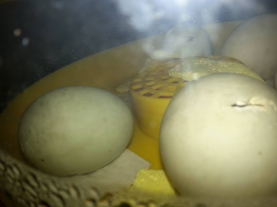 I'm not concerned about the ones that pipped the right end - I'm sure they'll work it out. Egg 3 I am concerned for because the membrane is yellow/tan and it's coming the wrong way. But I'm reluctant to open the bator, as I don't want to shrink-wrap the other ones who are pipping. We already lost one at Day 25 - so hoping we don't loose another.