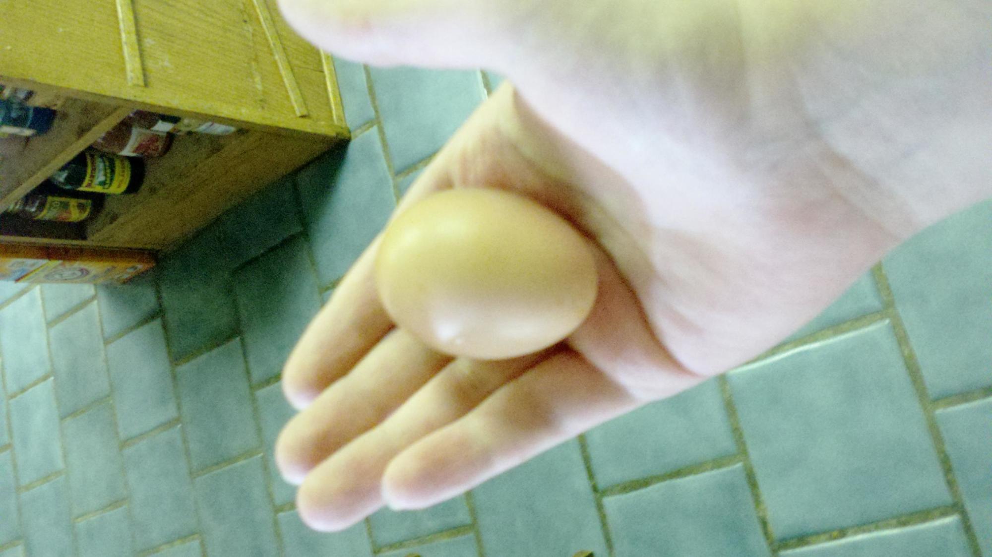 I had just threatened to stop buying chicken treats, and sheepishly brought home another dozen eggs from the store, when hubby found this little beauty.