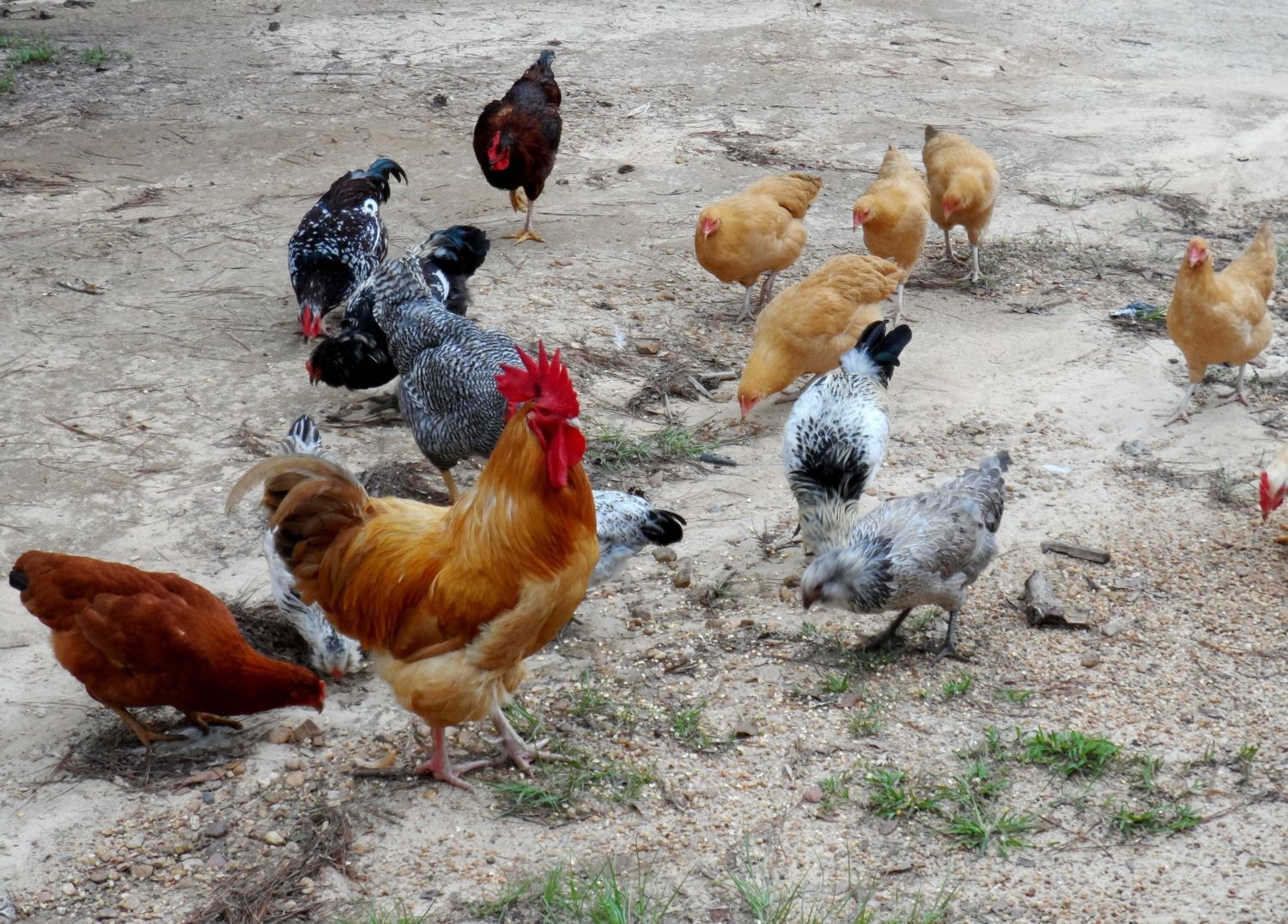 My big flock. I had to quit letting them out for awhile until we finish some projects. They follow me around worse than a shadow and I don't want the mini's to step on them. Besides, they get in my little barn and throw hay everywhere and I sure don't need chicken dookey on my tack and equipment. They are like a group of preschoolers, so cute.