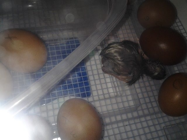 This is "Brownie," who bears a striking resemblance to one of the birds mentioned. Her red features have darkened a bit in the past couple days, so I suspect it will be any day for her too.
