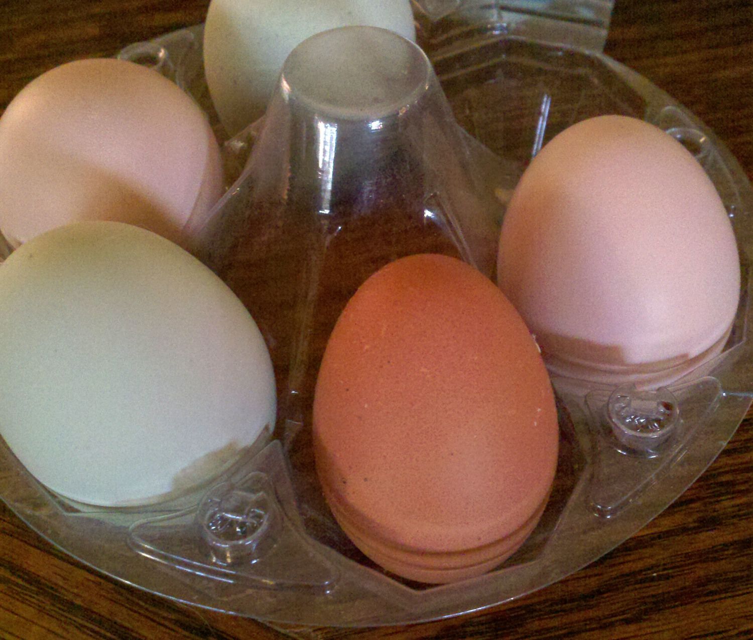 Thanks! But yesterday I got two green eggs, so it can't be my EEs (I only have two).My EE lays a pinkish egg even thou she has a pea comb and slate colored legs.....beard and muffs and all.....EE all the way....