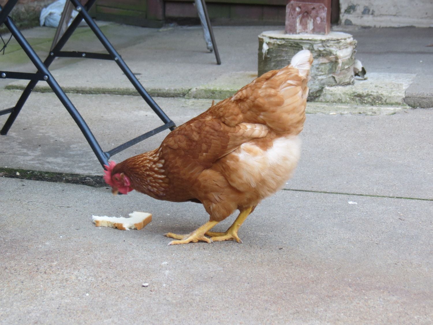 I am giving them organic layer feed from the feed store and supplement with left-overs from the kitchen. They are beautiful birds and otherwise look very healthy.