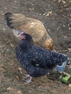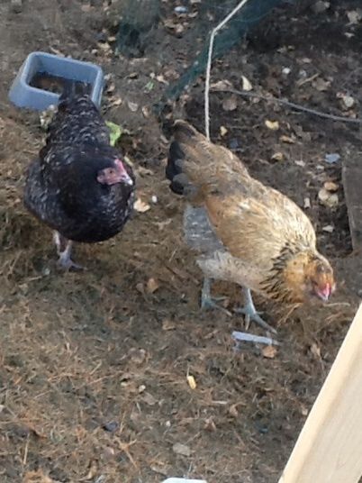 Those pictures were taken yesterday. I might post a "before" just to show how awful they looked. Particularly the Marans. Back in July when they came, they were so thin the keelbones were protruding, both seemed to have never been outside, and they were completely frightened of people. The bald areas looked like feathers had been picked out- scabs and such. The nails in their feet were overgrown like they were in cages and couldn't scratch like a normal chicken. They've gotten much fluffier, weightier and more relaxed, but they still don't trust me like my other hand-raised chickens. They still seem nervous, though they are much less frightened than they used to be.