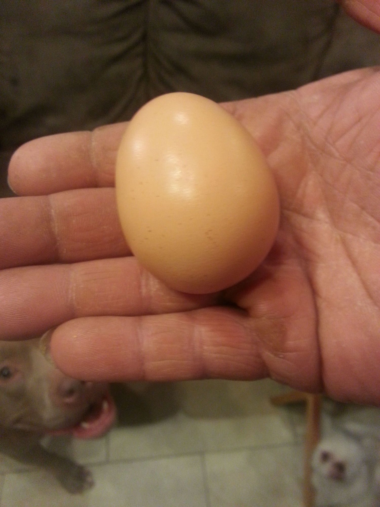Ladies and gentlemen my ee just squatted for me. I am a happy girl. I have no idea if she has layed an egg yet but I did get an orange egg today. It's not really pink or brown. It's orange. Maybe its the satsumas I've been feeding them? Nevertheless she squatted! !!!!