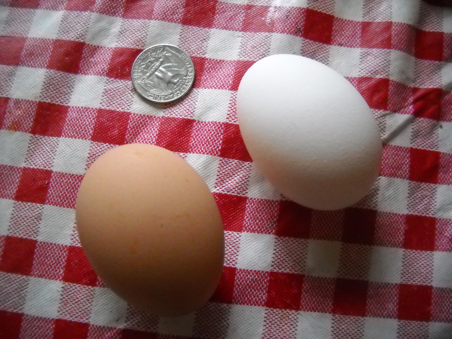 I have been waiting for EVER for my7-month pullets to start laying, and now we got 7-8 hour days, so I decided they would wait awhile to start laying, until feb. or so, but then, sunday, I got a wonderful surprise! She ( I think its one of my australorps) has laid for three days now, on the roost. This is one amazing gal, because today it was about 20 degrees BELOW zero, F. Still a nice egg, though. I do hope she will start using the nest soon. What about my other 15 "hens" why aren't they laying? Heres a pic of the first egg, compared to a large store egg. the next two were about the same.