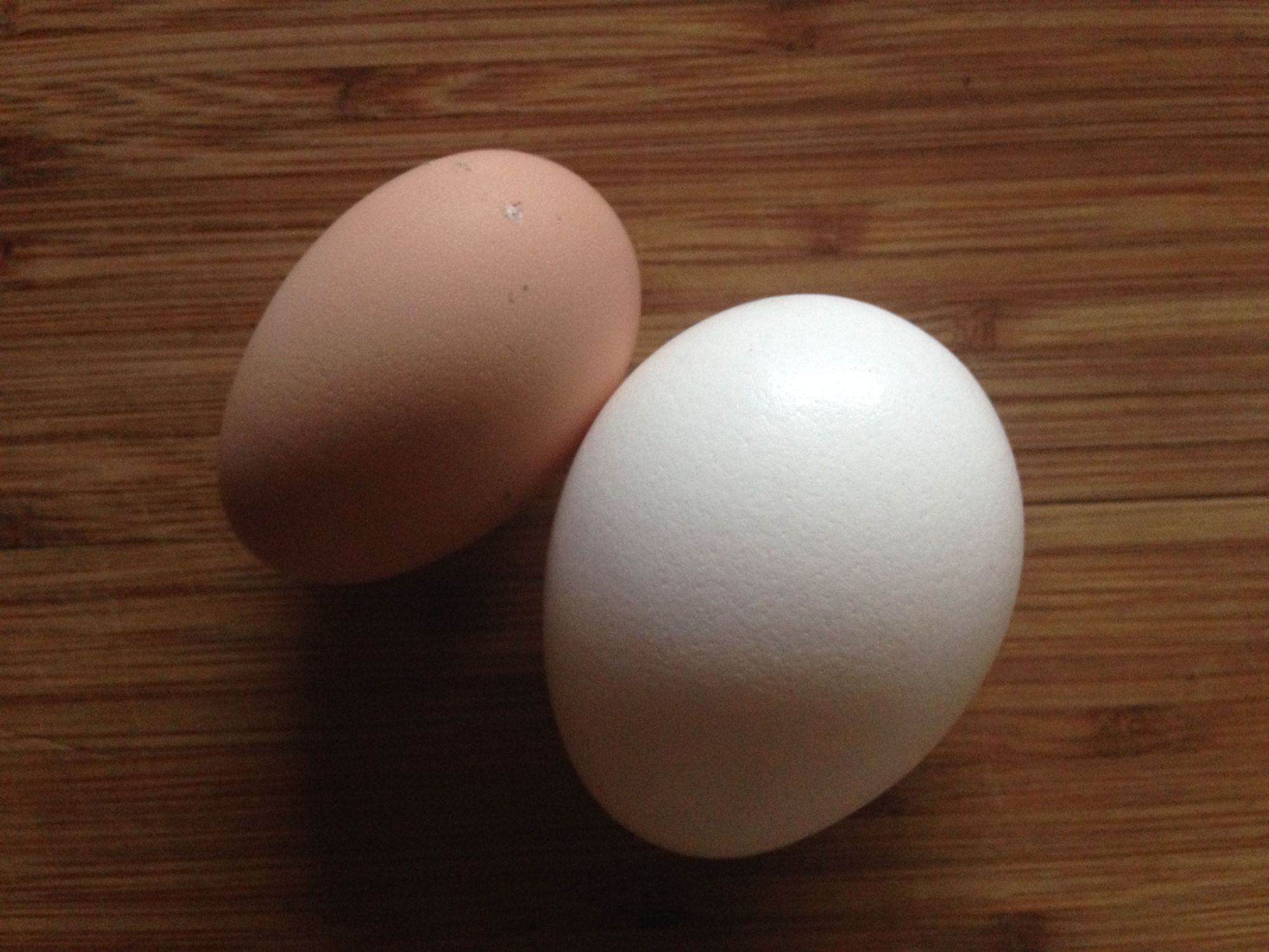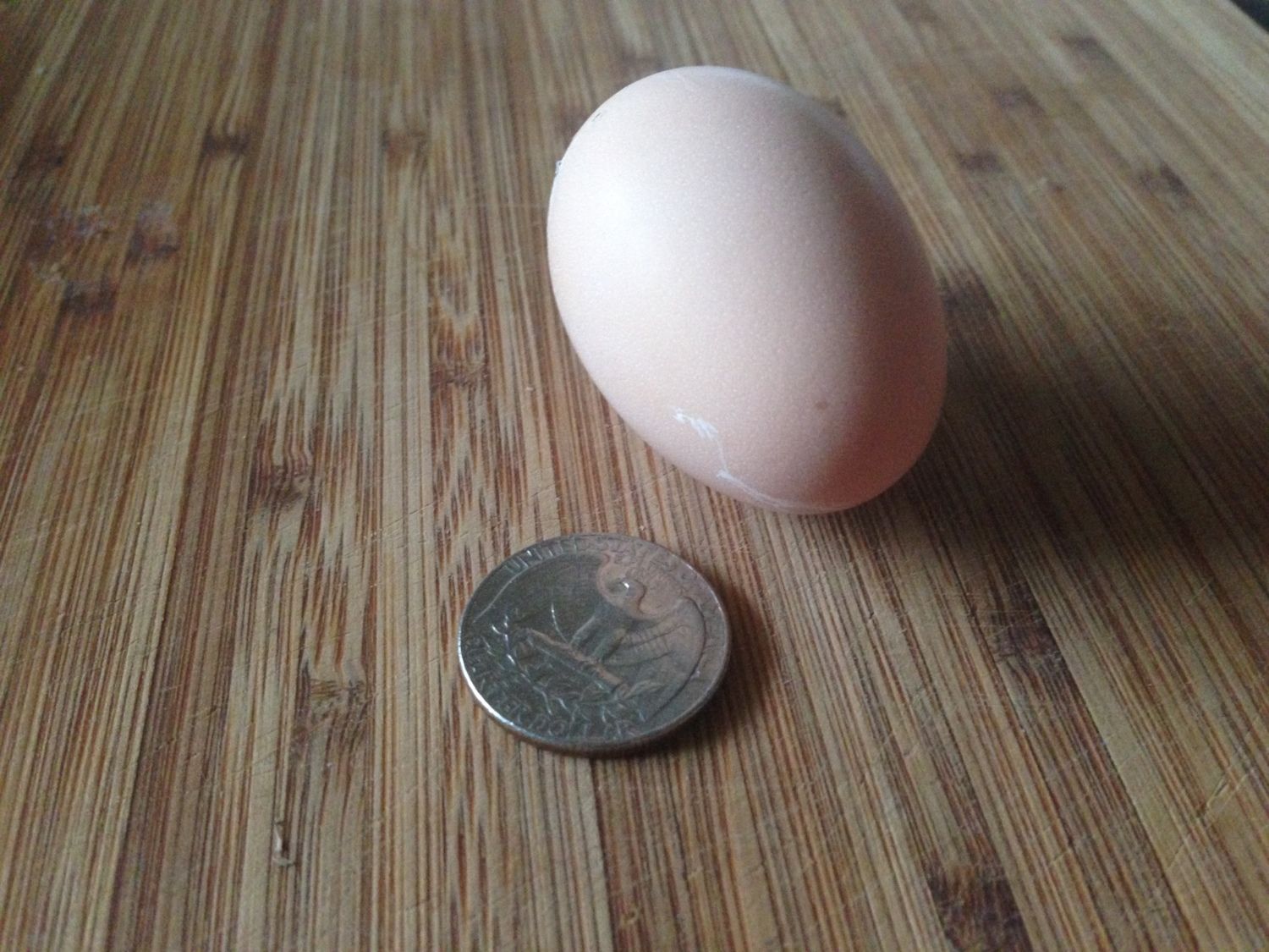 Woo, hoo! First egg EVER from our little flock. The only one that even looked close to laying was one of the Barred Rocks, so I'm pretty sure she's the responsible party. We got her at 1 day old, so she would have hatched May 7, which makes her 20.5 weeks old -- quite the early-maturing girl. In the last days and weeks, she's been making a lot more noise than the others, has very bright red wattles and comb, and has been checking out the nest box. She looks a lot like the picture you posted, Jaxia. The egg was small and oblong (that store-bought egg in the bottom picture is an Extra Large, btw), and it had a really well-formed hard shell. I even had to crack it a couple of times when I went to open it up. I guess the calcium in that layer feed is doing the job. Here's the result. Can you tell I am proud of her?