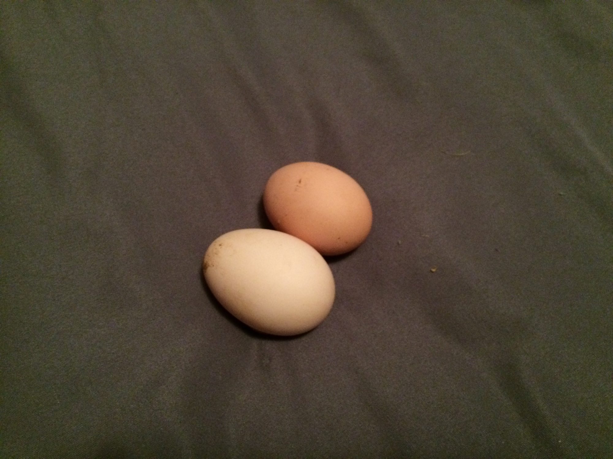 Around 5 pm, I get a call from my papa saying it finally happened. I am pretty sure I know who did it, a BR named Aleandra and an RIR named Henny Penny. Here they are!I think Penny laid the one on the bottom left, oddly enough a bit larger, pointier and lighter in color than Aleandra's. I think Aleandra laid the one on the bottom right... Any guesses?