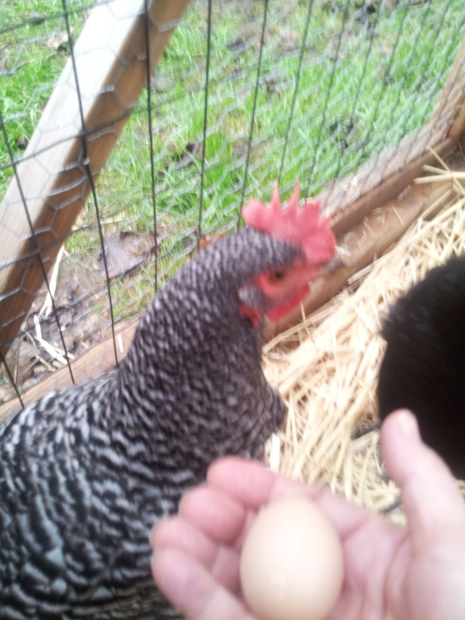 Yesterday we gained a 3rd layer. Hubby found the egg while I was at work, he said it was white! When I got home it was a definite green! Hubby swears it was white when he found it![]()