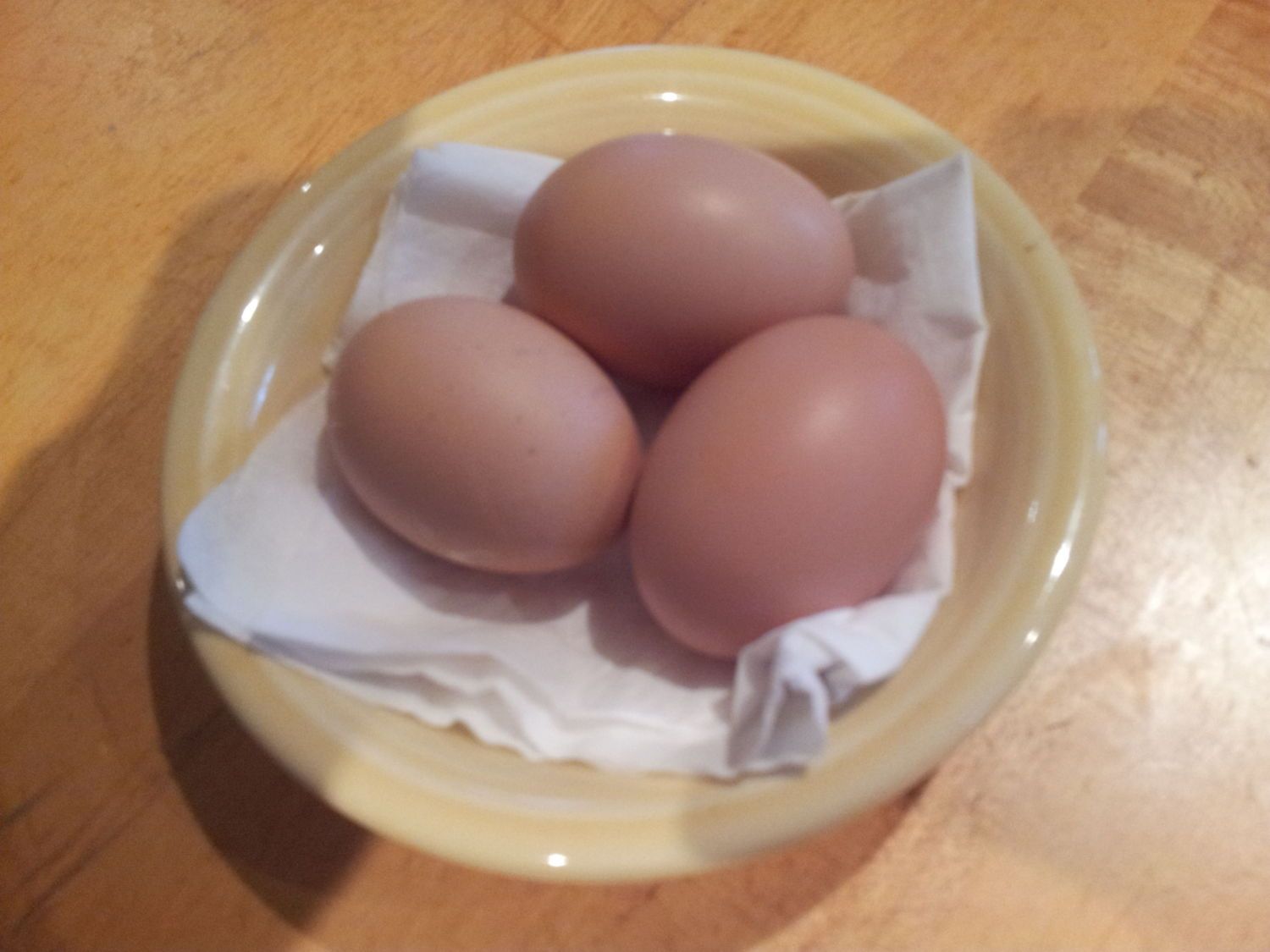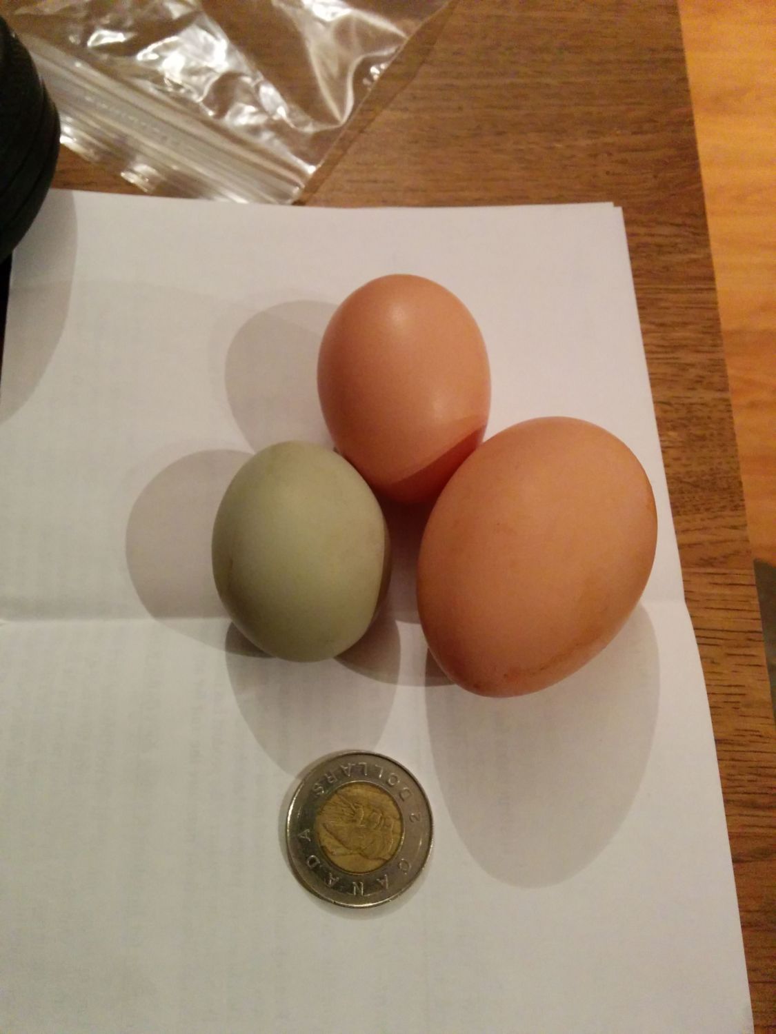 Here is a picture of the new green egg, next to egg #4 (in 4 days!!) from another new layer! The big egg is from my only hen. I can't believe I gained 2 new layers this week!!