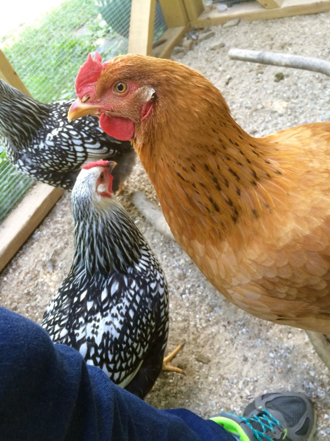 I went to much effort to build fancy sliding nest boxes under the poop tray so my wife Cheryl could slide the nests out to gather the eggs but she was so excited that she just dove under to retrieve it. lol