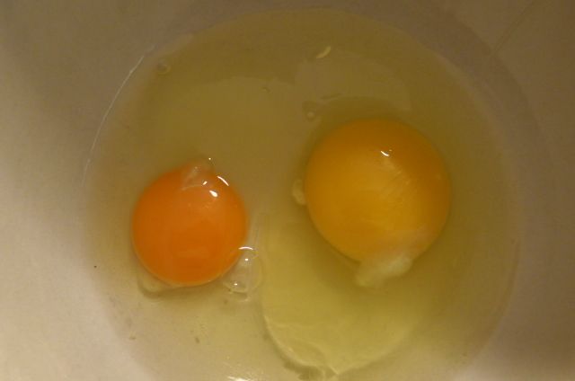 Great comparison picture! A backyard egg yolk next to a store egg yolk! Wow!