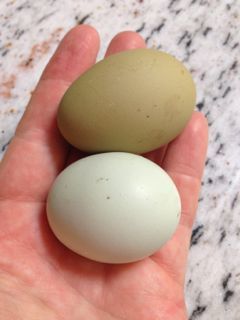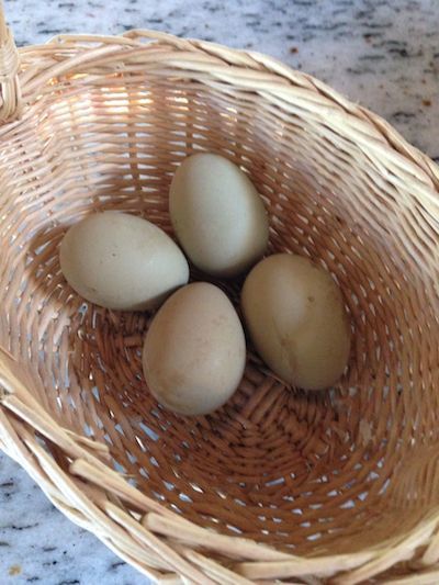 Today I found my first egg. Actually I found four in a little pile she made under the chicken coop.