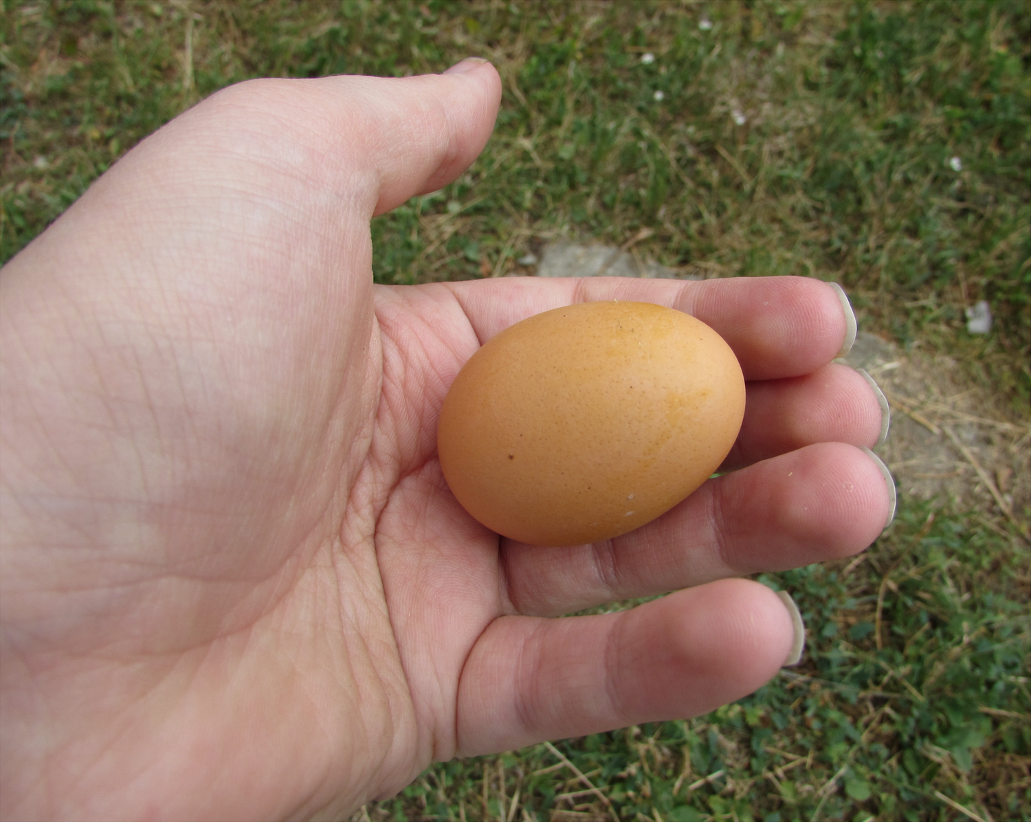 It's brown, so it either came form the welsummer or the marans. Not the full size I would be expecting from either of those two nor as dark, so I imagine it's really the first egg of the flock. Either way, I am excited!
